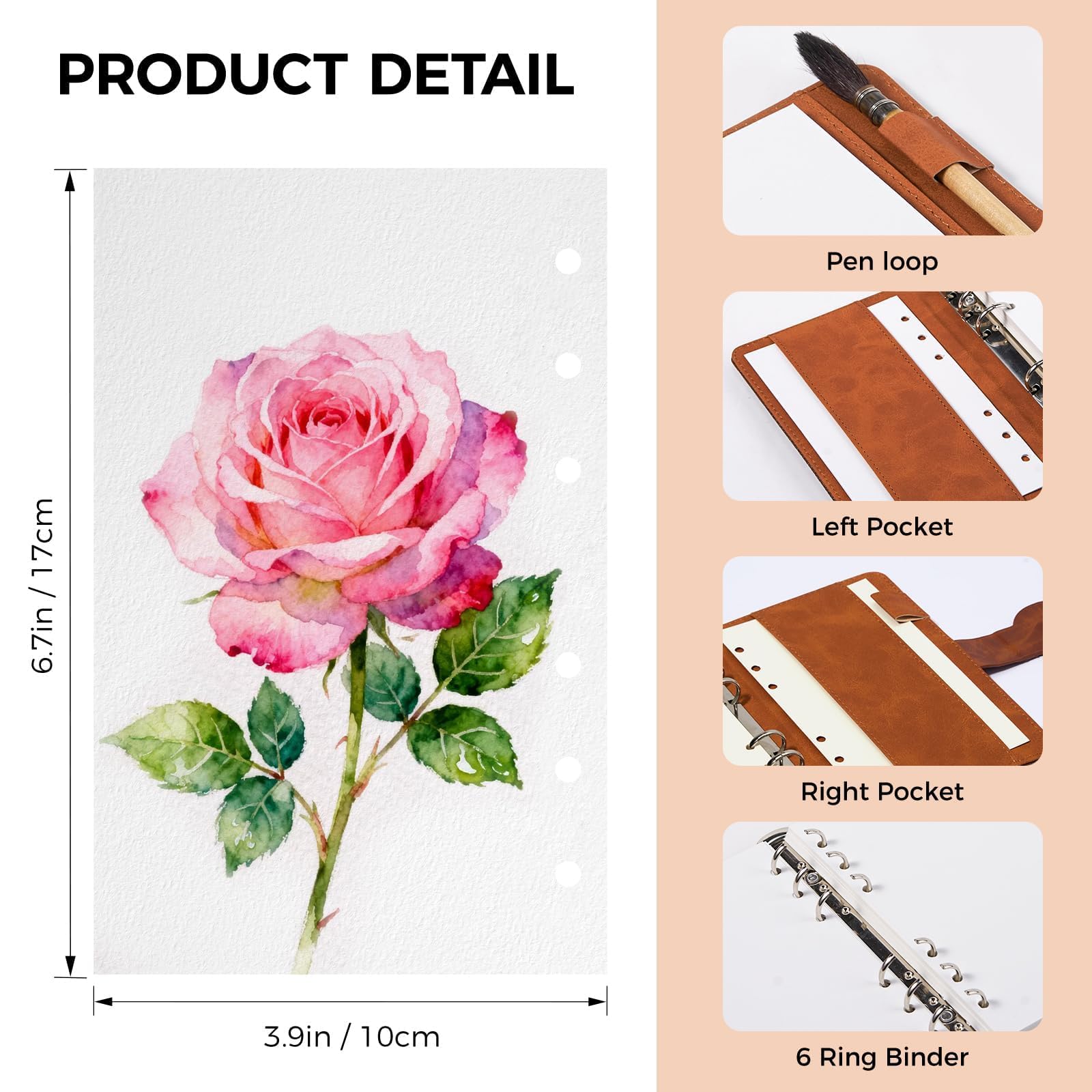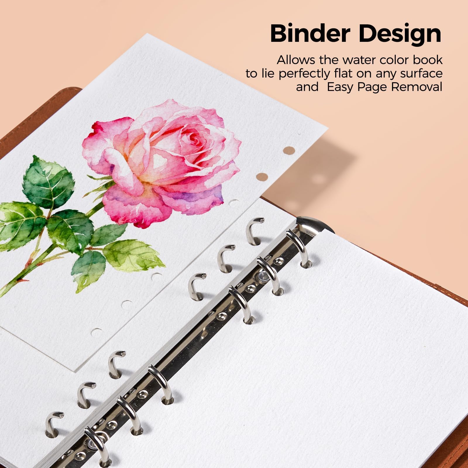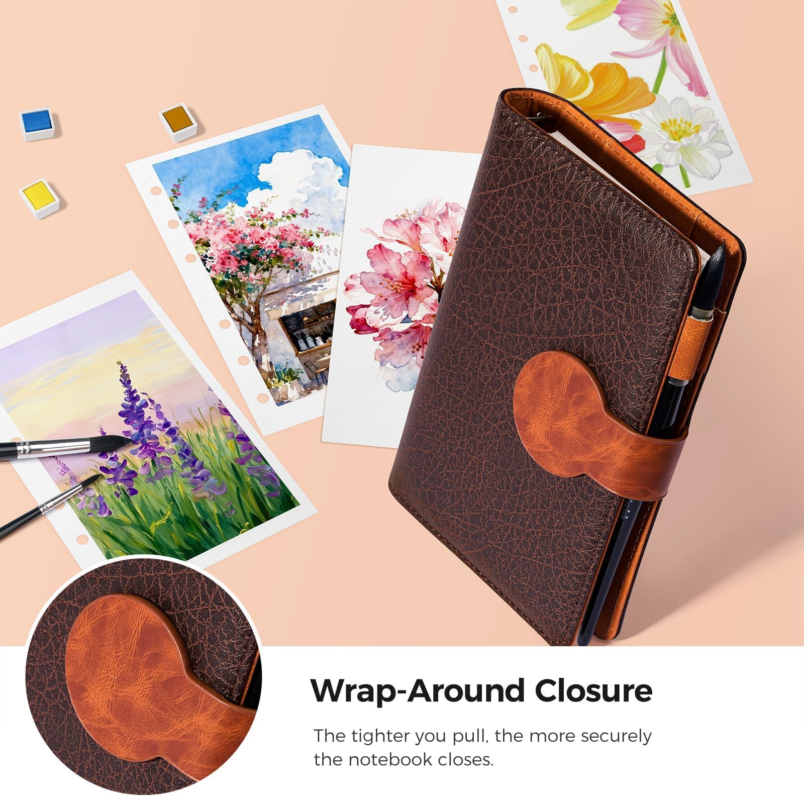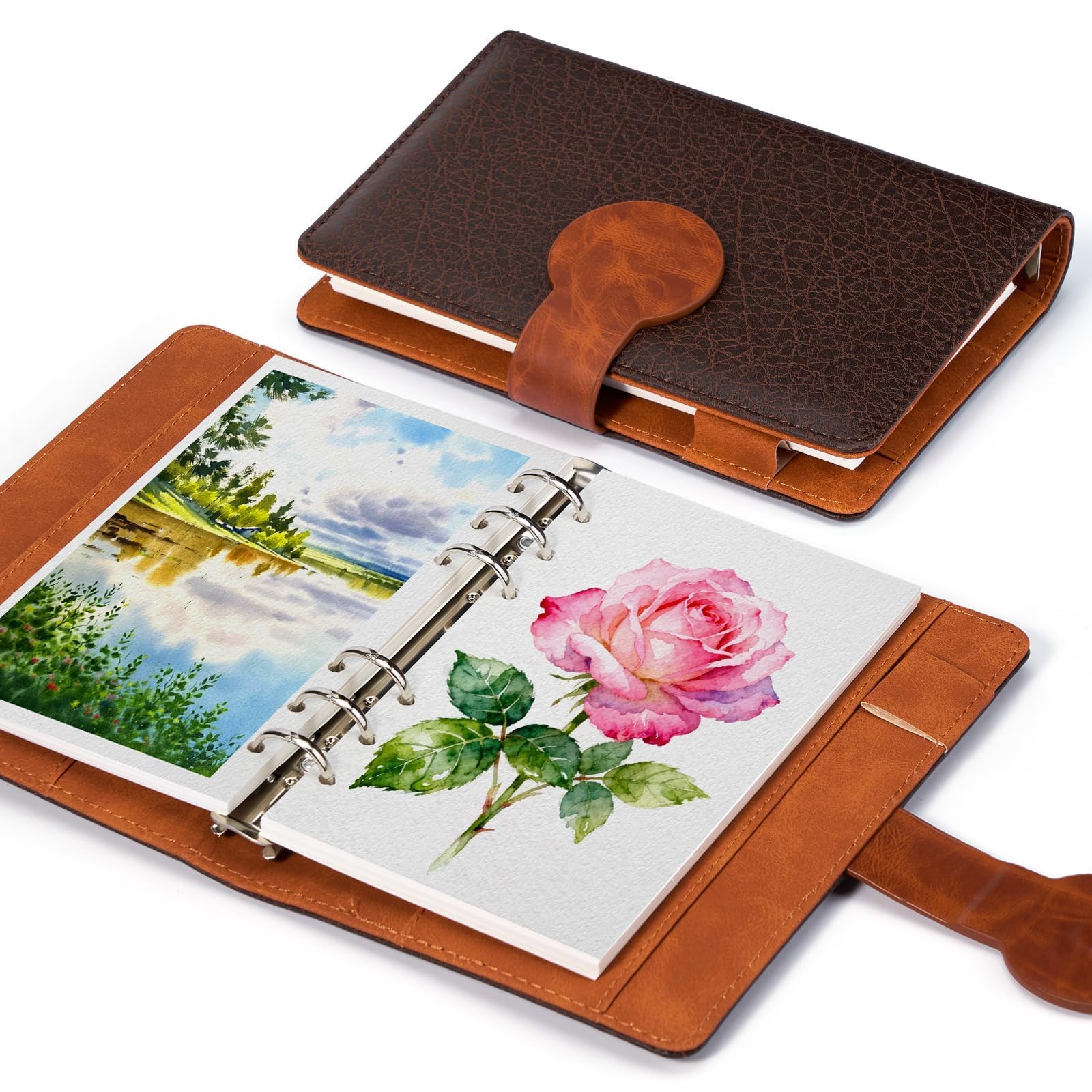 Lightwish 水彩スケッチブック 詰め替え可能 綿100% 300gsm (140ポンド) - 6.75インチ x 3.9インチ コールドプレス 水彩紙 ジャーナルノート - 20枚 PUレザーカバー付き ミクストメディアを描くのに