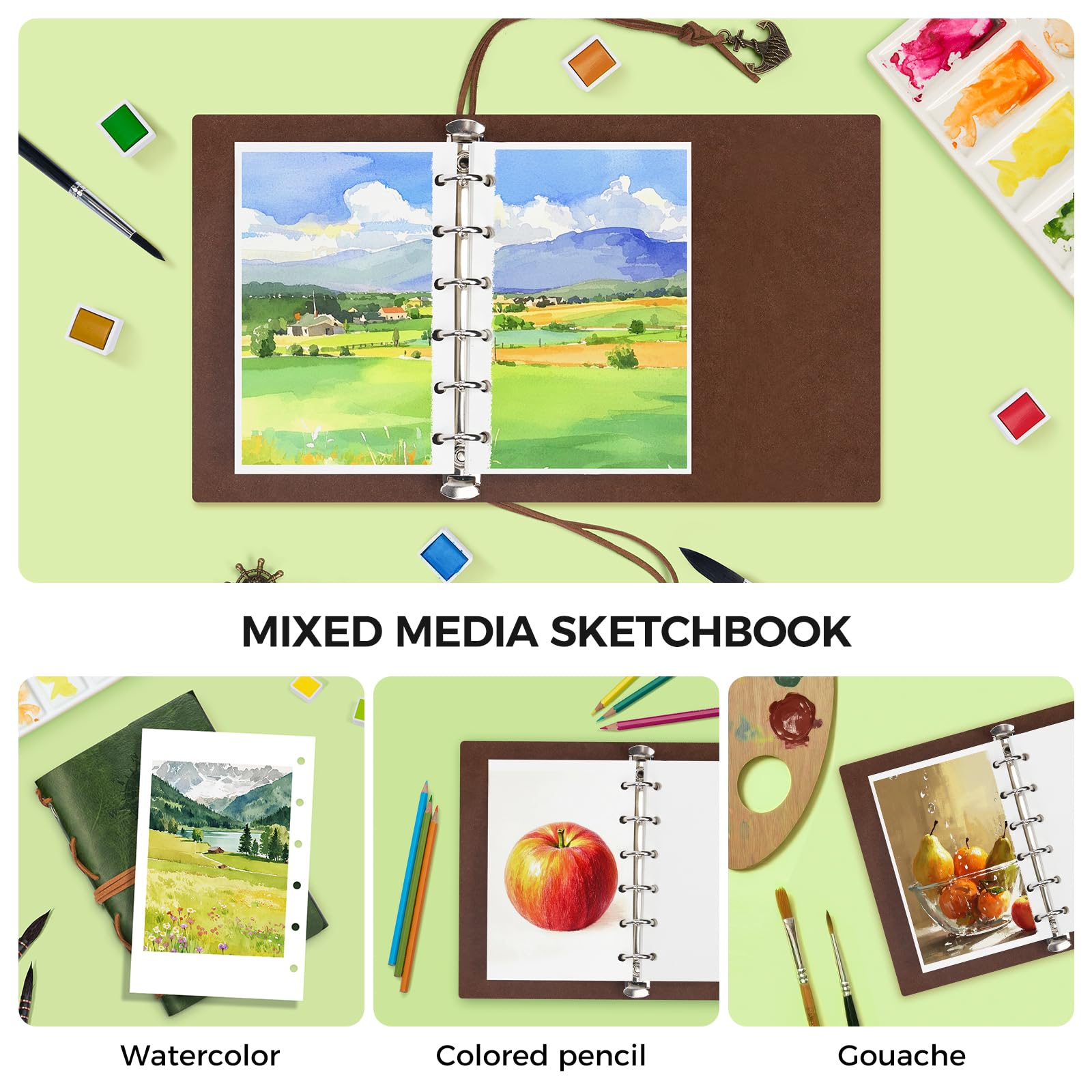 LIGHTWISH 100% コットン 無酸 コールドプレス(中目)水彩スケッチブック | 300gsm 水彩紙日記帳 | アーティスト・学生向け 20 枚入 | 140×208mm ポータブル・軽量 外出用ノート
