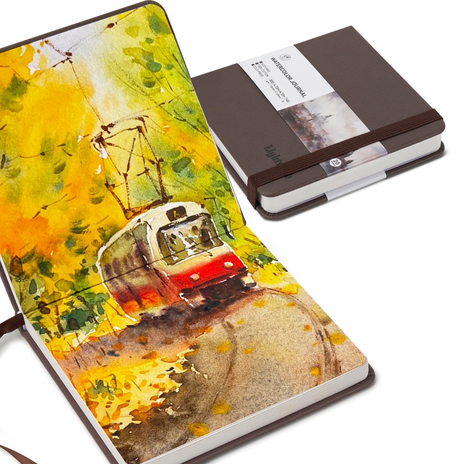 LIGHTWISH 水彩ジャーナル、100% コットン 画用紙 中目 水彩紙 スケッチブック、126 x 92mm、20枚 (300gsm)、水彩、ガッシュ、アクリル用アシッドフリー