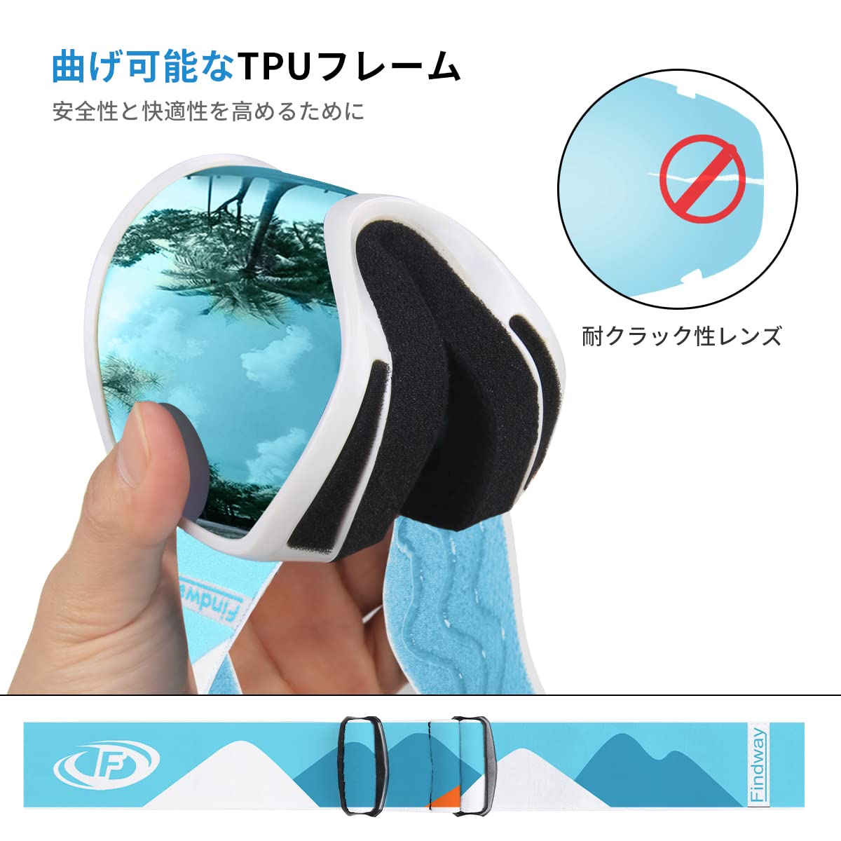 [Findway] スキーゴーグル キッズ スノーゴーグル 子供用 メガネ対応 OTG 曇り止め 広視野球面レンズ着脱可能 防風/防雪/紫外線防止 キッズスポーツ用ゴーグル 軽量と耐衝撃 適用3-14歳ボーイズガール