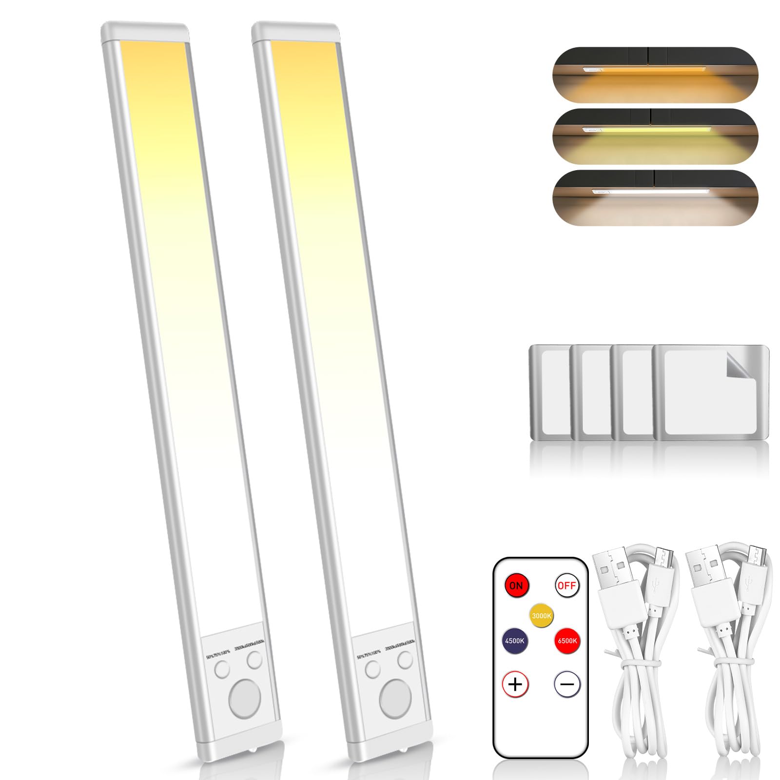 Vividorad 人感センサーライト 室内 2個入り 30CM LEDバーライト 2200mAh 3色調光 TypeC充電式 リモコン操作 マグネット着脱式 手元灯 足元灯 フットライト 配線工事不要 省エネ 長寿命 高感度 高輝度 玄関/棚/物置/寝室/廊下/キャビネット/部屋/階段 照明用 3000K/4500K/6000K 電球色 昼白色 昼光色調整 (2PCS 30CM)