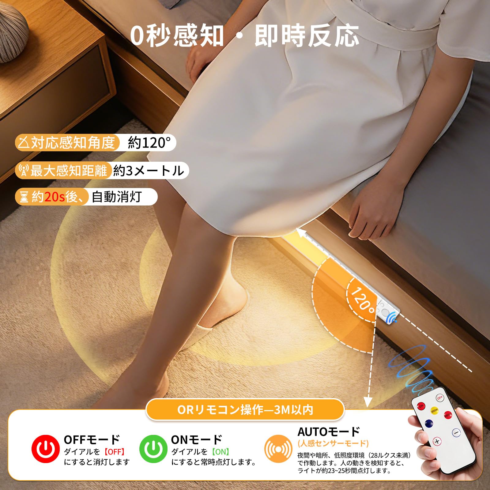 センサーライト 室内 USB充電式 足元ライト 間接照明 人感センサーライト 無段階調光 側発光 RGB 電球色 昼白色 鉄片テープ付き 階段 廊下 寝室 玄関 クローゼット 日本語取扱説明書