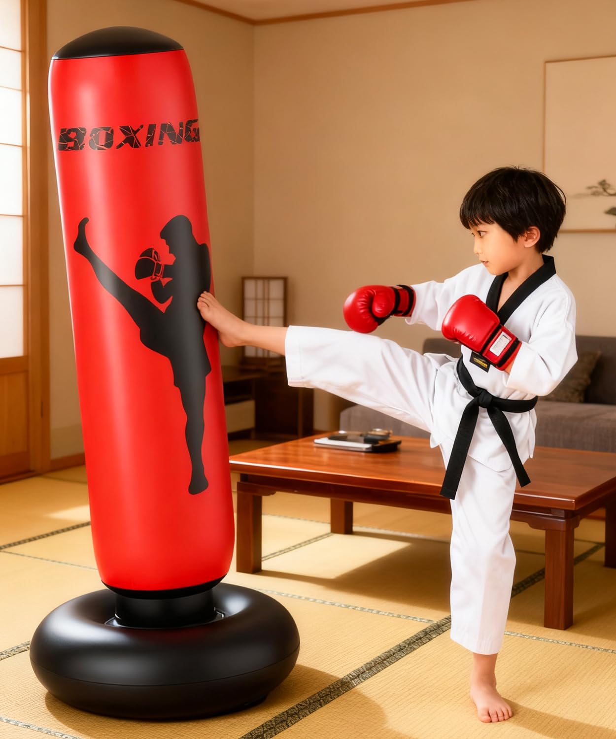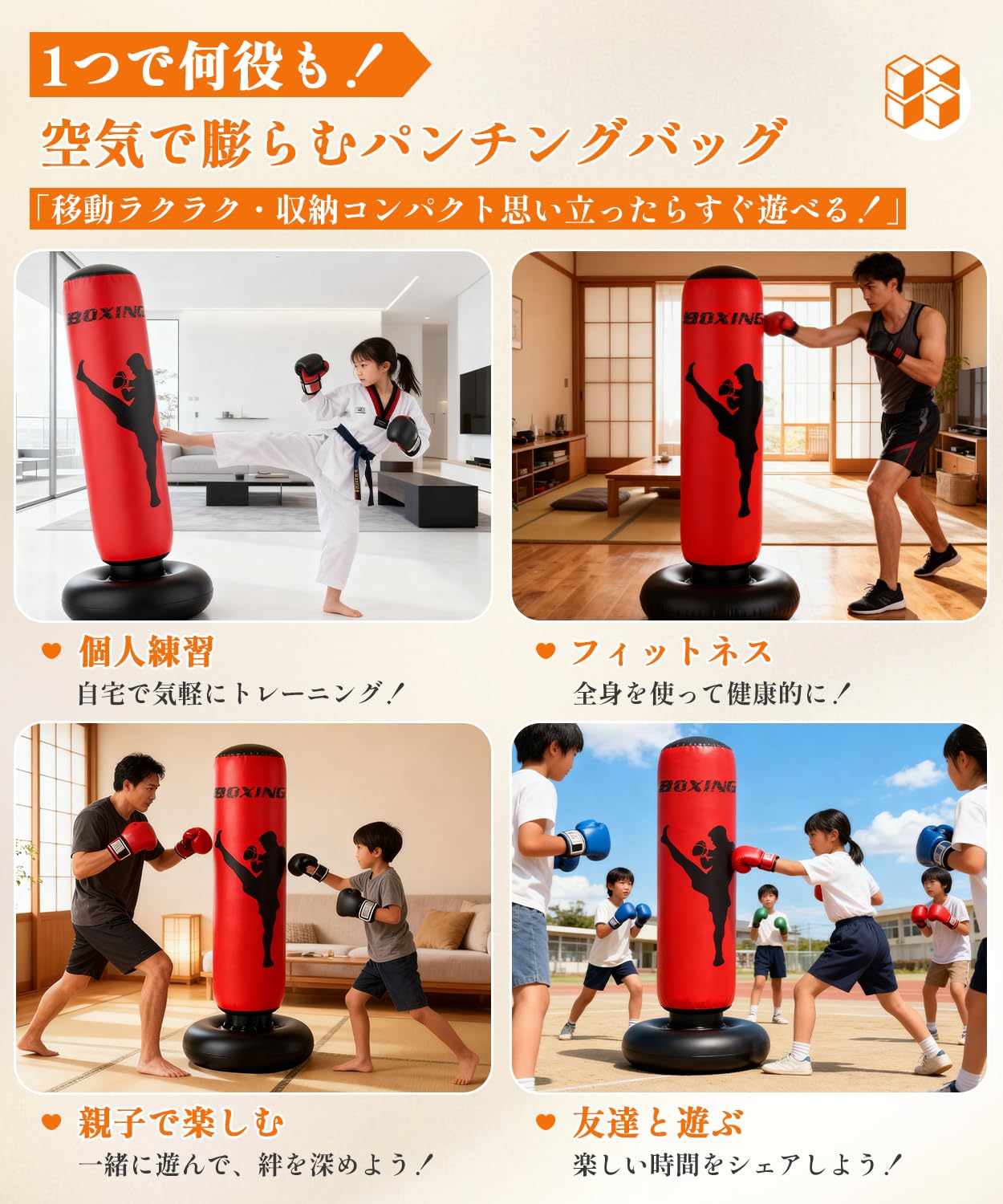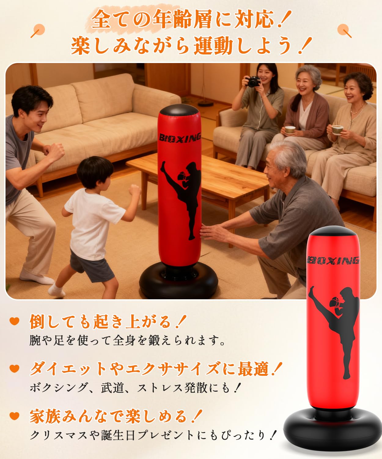 X XBEN サンドバッグ 子供 大人 エアーパンチングバッグ スタンド式 キックボクシング 家庭用 スタンドタイプ 伸縮性 PVC素材 ストレス解消 運動不足解消 室内 武道 格闘技 空手 エクササイズ 日本語説明書 誕生日 クリスマス お正月 子供の日 誕生日プレゼントやギフトに