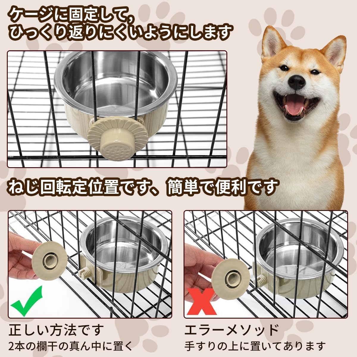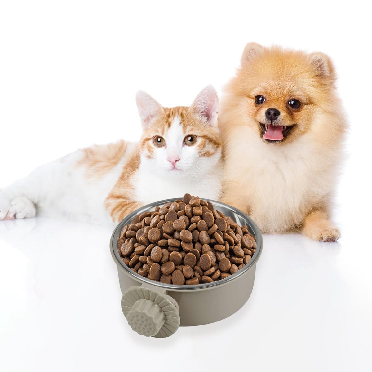 ペットぶら下げボウル ペットボウル ハンガー ゲージ用 ペット食器 餌入れ 固定 猫 犬 うさぎ 小動物用 食器 (グレー*2, S)