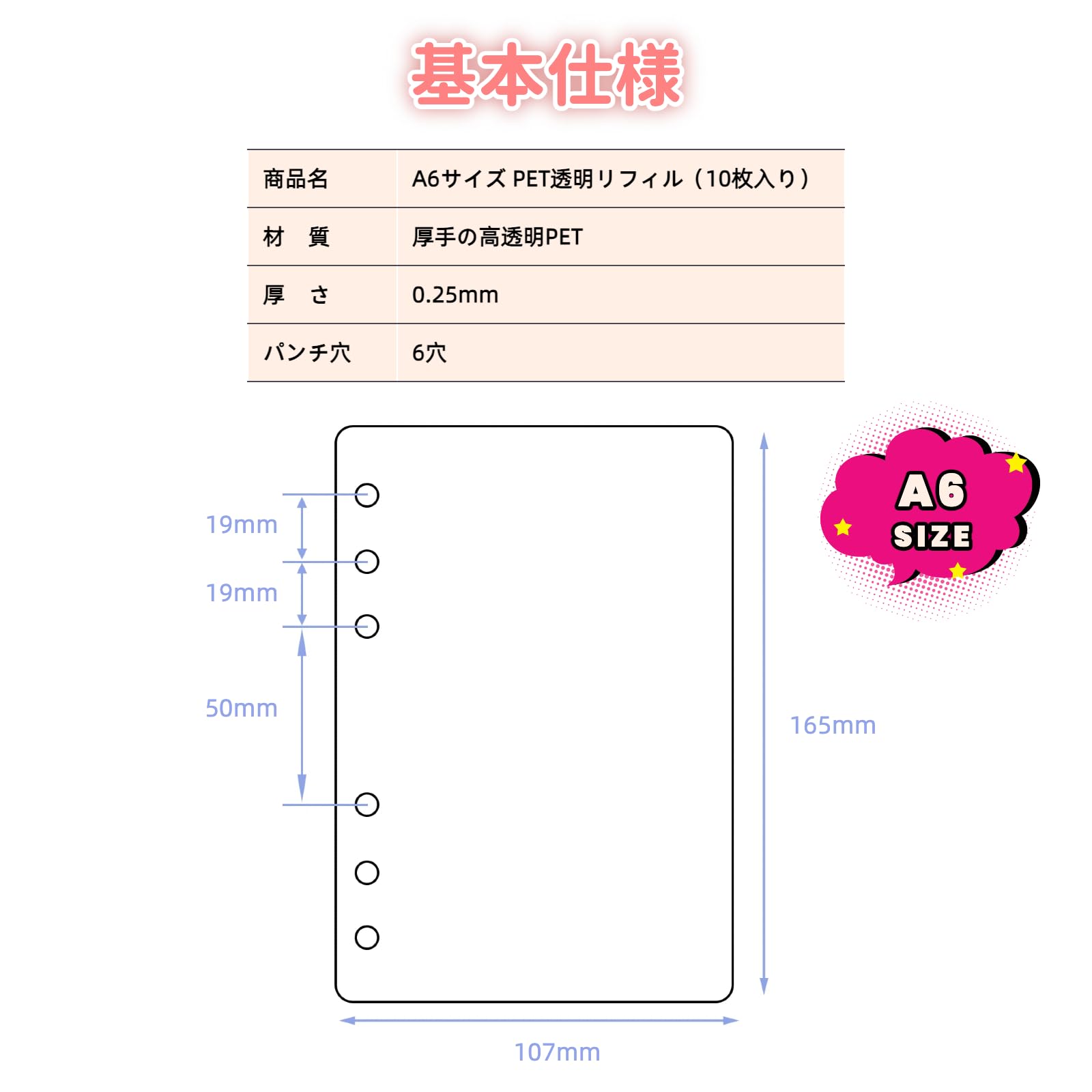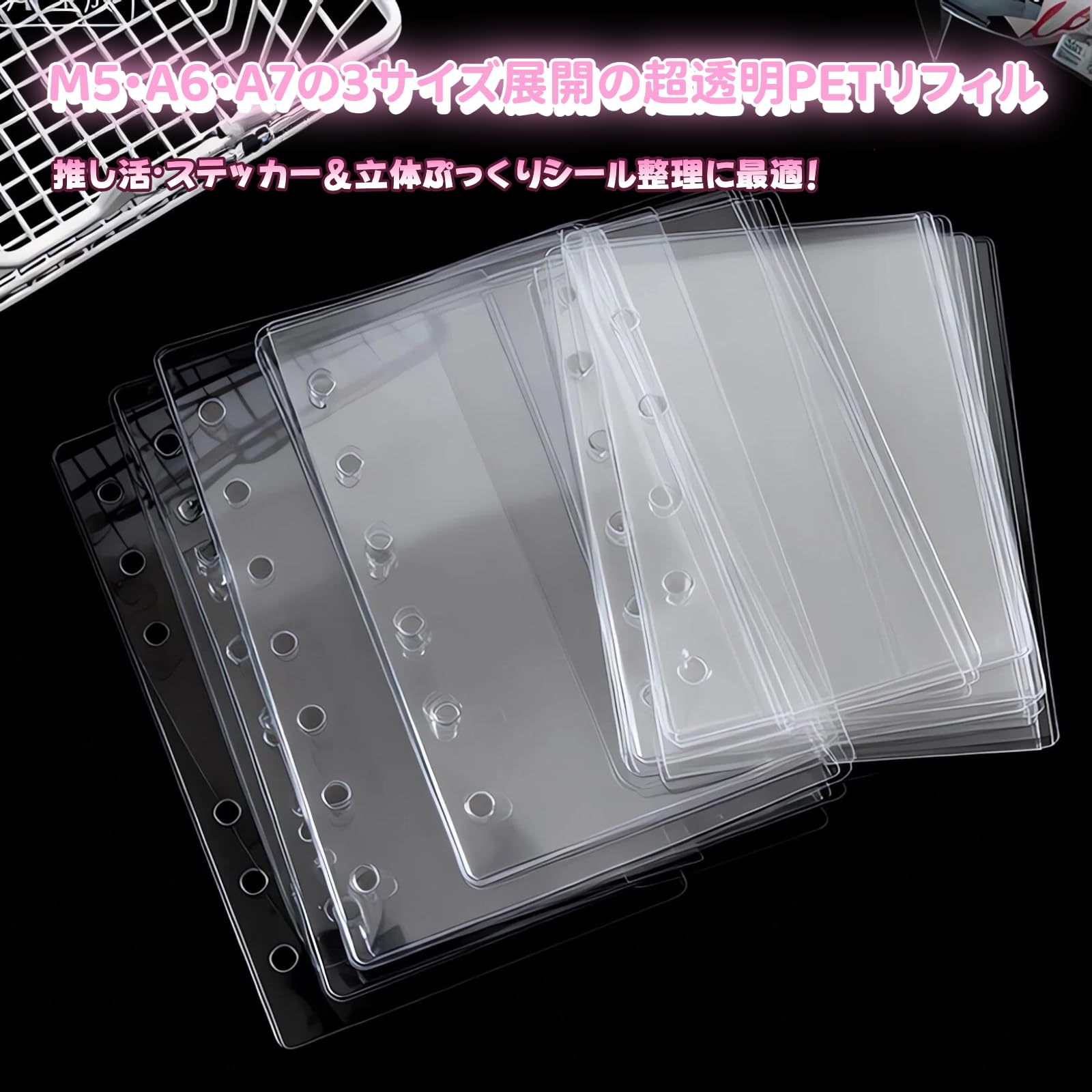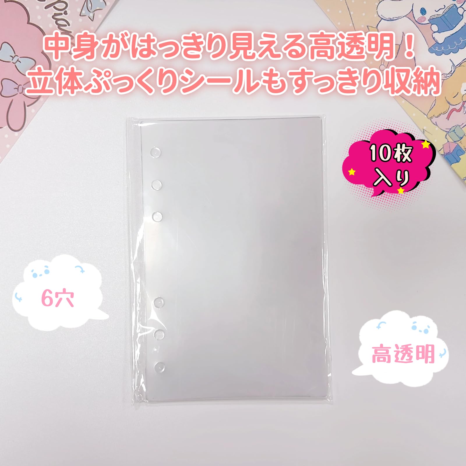 A6 リフィル シール台紙 透明PET製 薄型シート 0.3mm加厚版 立体シール収納専用 はがせる バインダー用 6穴(10枚)