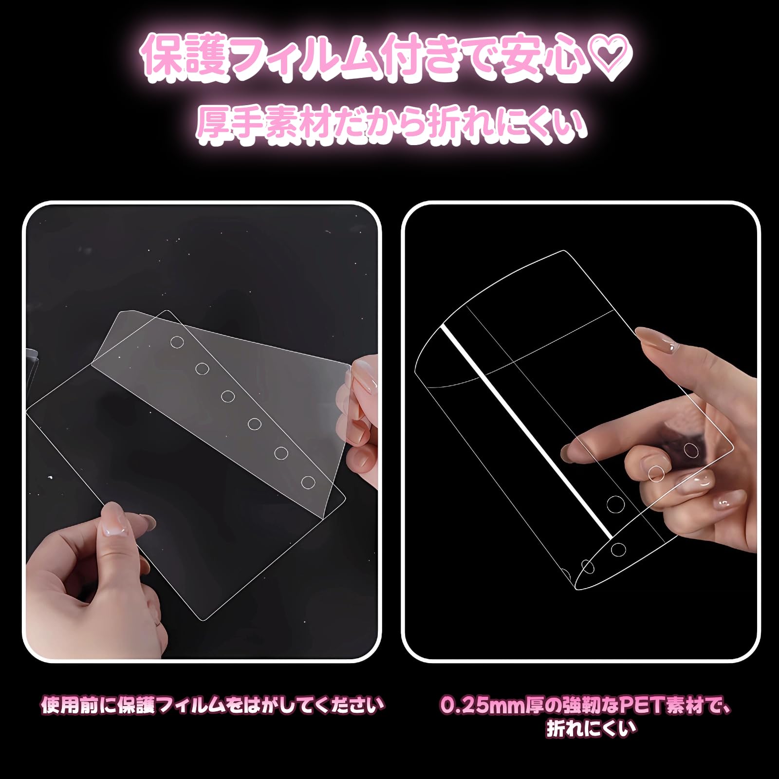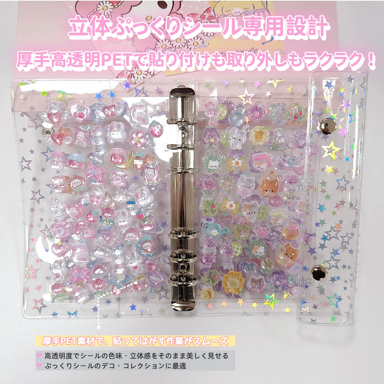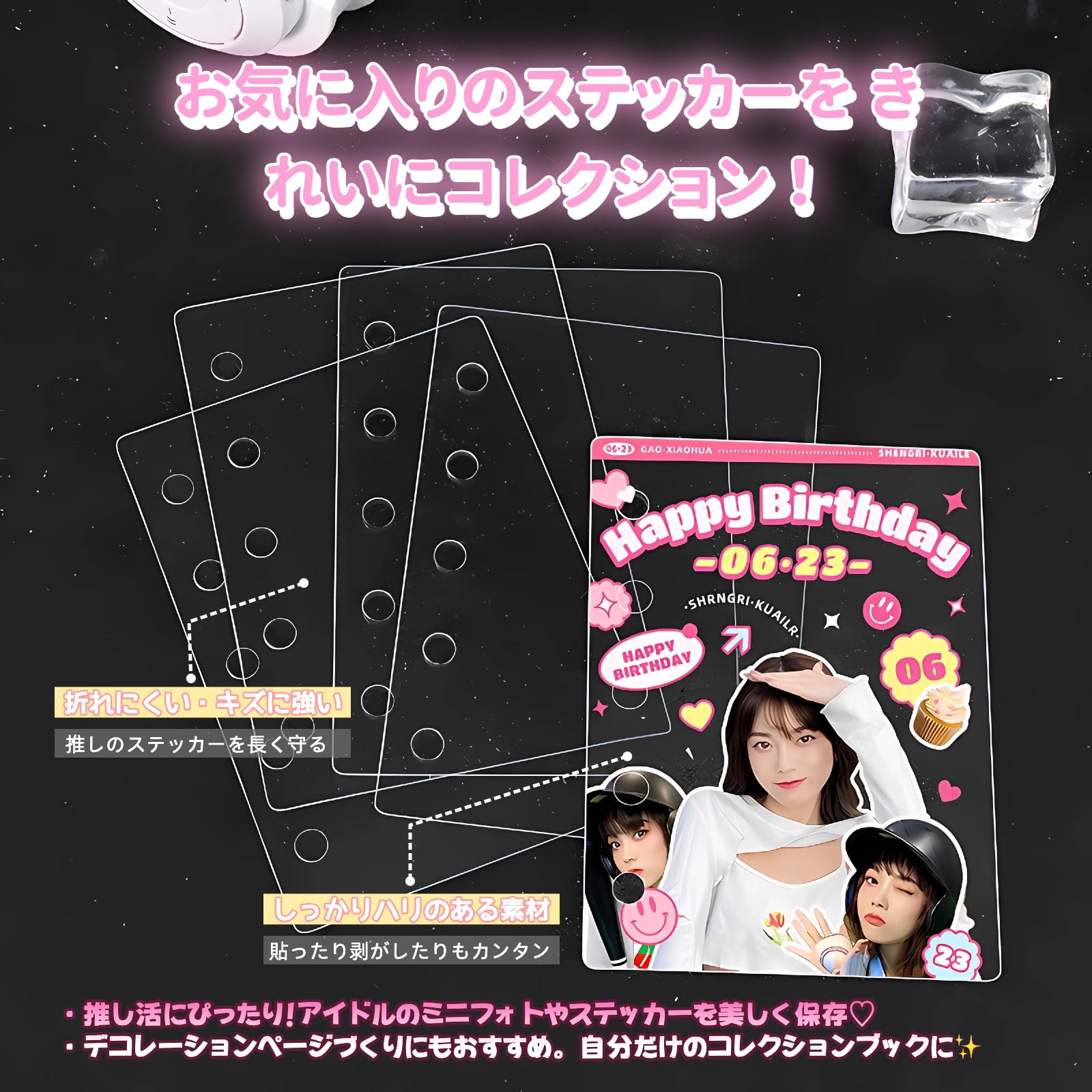 zenoco シール帳 透明バインダー 推し活グッズ A6 女の子 はがせる 6穴 シール収納 厚め 台紙付き(リフィル20枚セット・レーザースタータイプ)