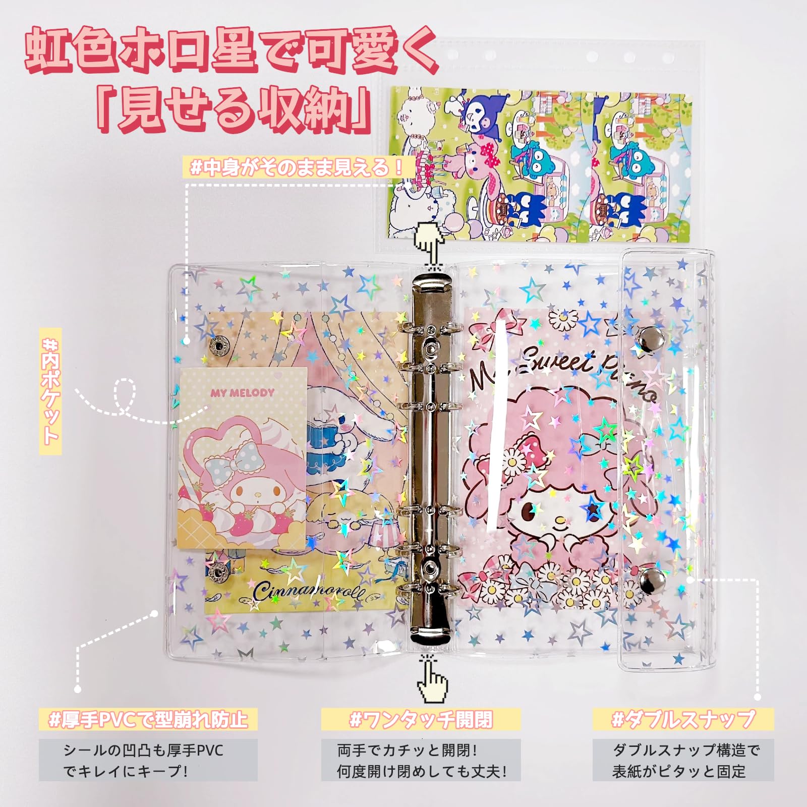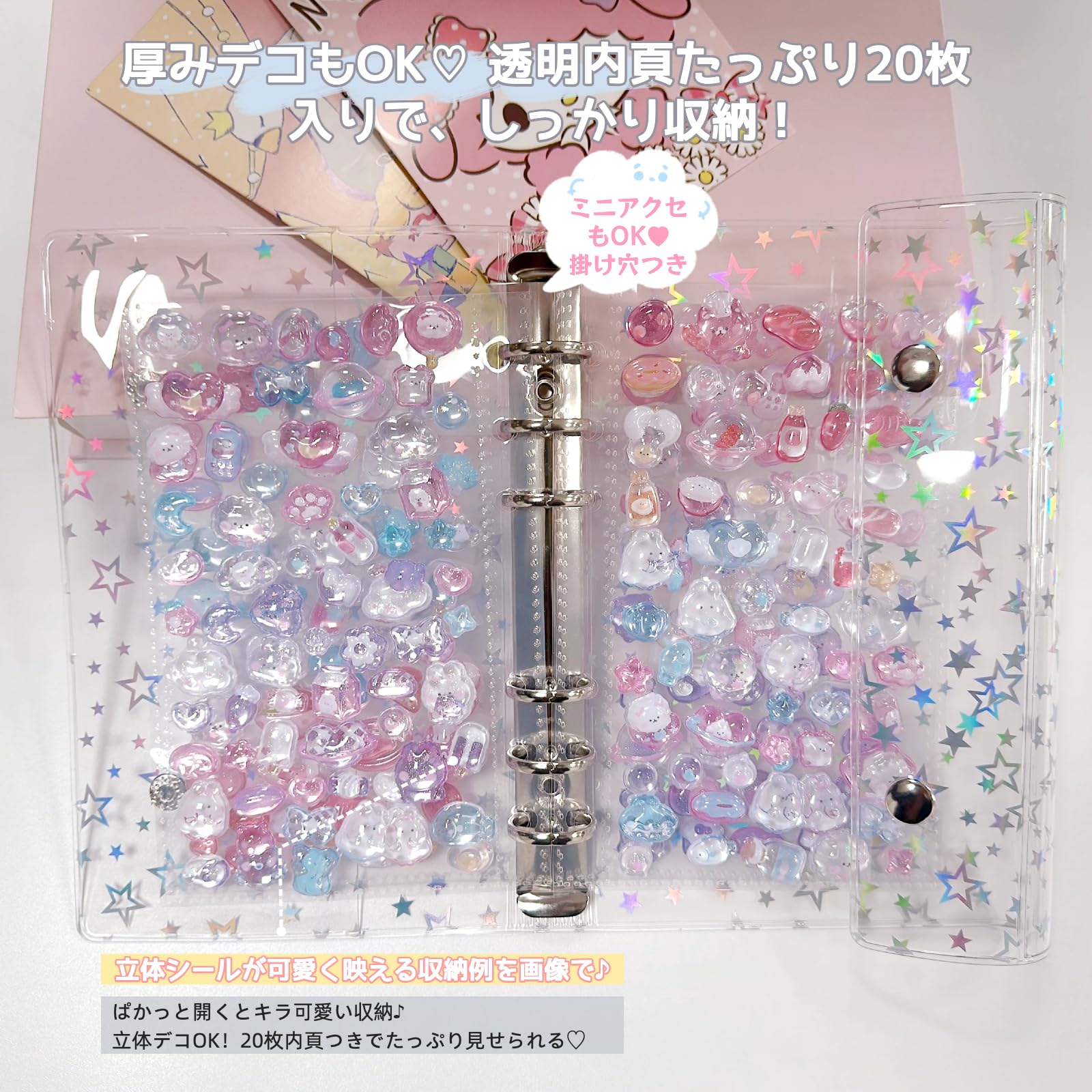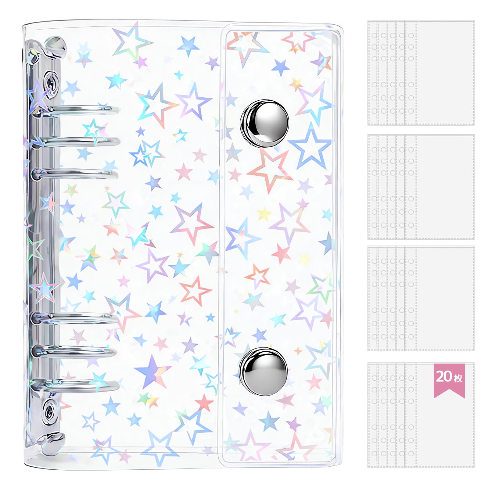 zenoco シール帳 透明バインダー 推し活グッズ A7 女の子 はがせる 6穴 シール収納 厚め 台紙付き(リフィル20枚セット・レーザースタータイプ)