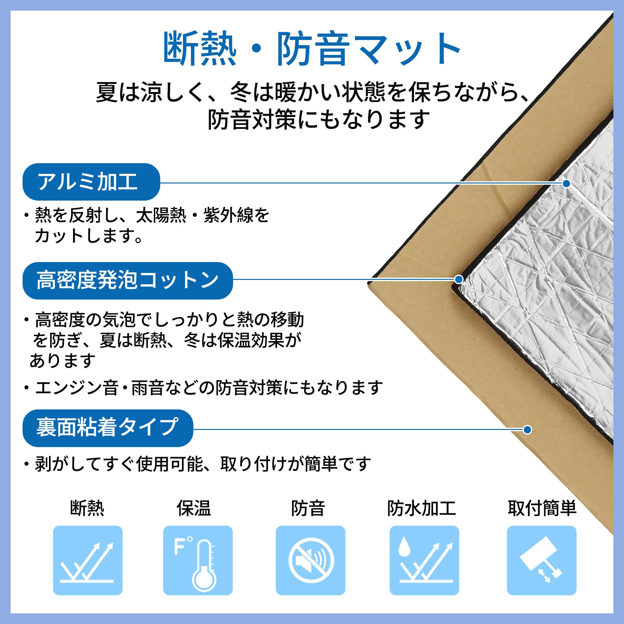 FUELHOOD 断熱マット 厚さ5mm 300cm*100cm 車用 熱反射 吸音 防音 遮音防音材料 フォーム製 フロアテールゲート防音 内装パーツ アクセサリー