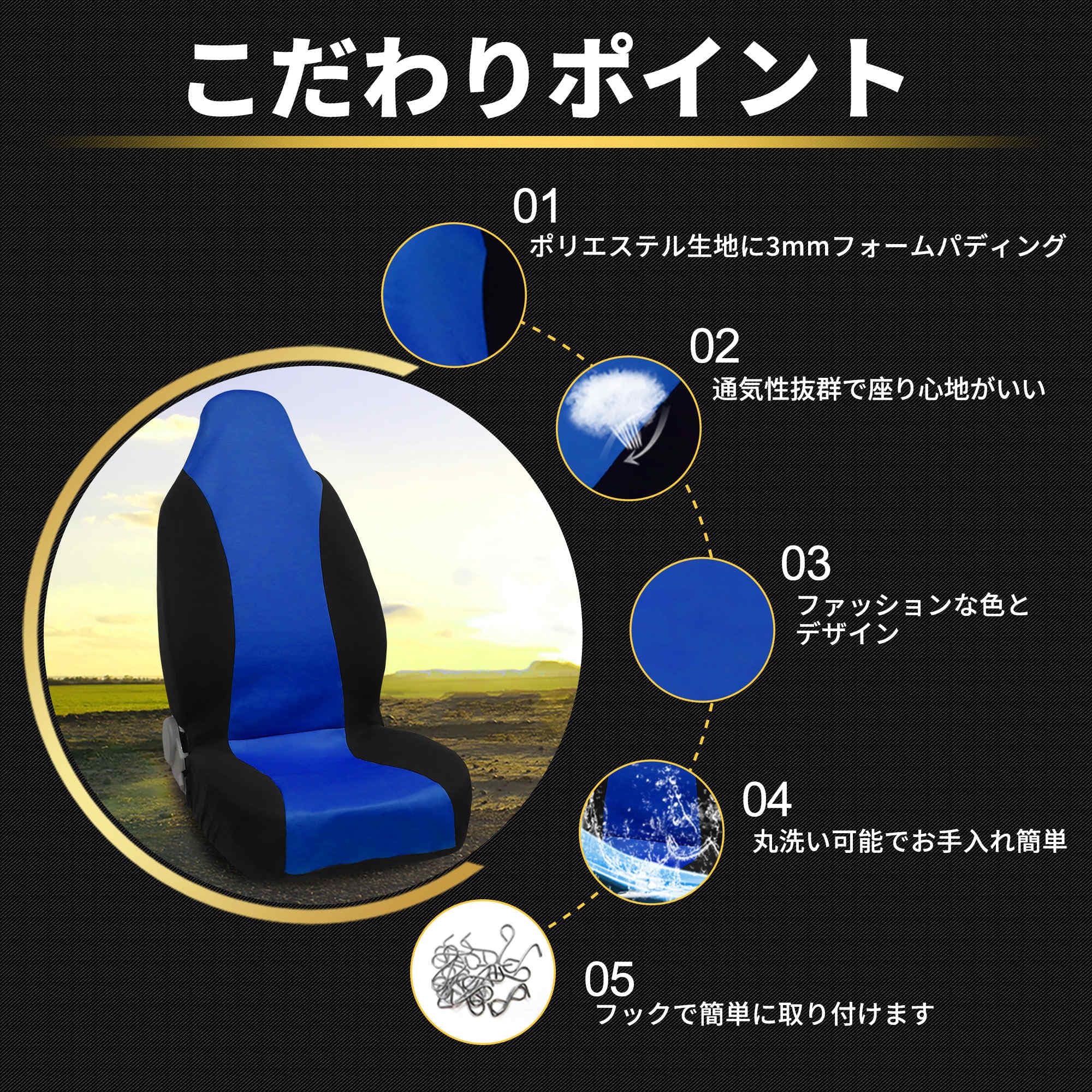 FUELHOOD シートカバー カーシートカバー バケットシート プロテクターシート 車用 カー用品 ブルー&ブラック1個入り 内装パーツ アクセサリー