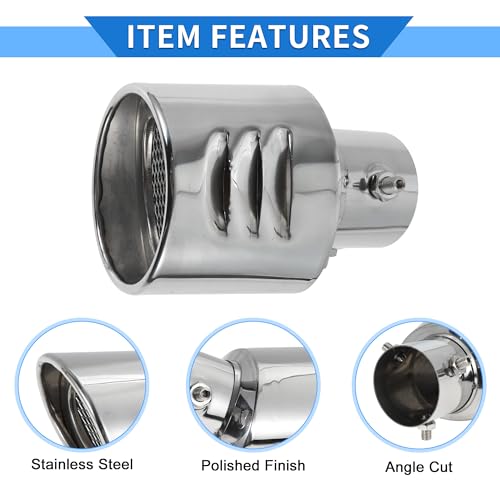 srasakan 車用 マフラーカッター ストレート式 マフラーチップ 口径63mm エキゾーストチップ 斜めカット ステンレス製 排気管 マフラー パイプ テールパイプ 外装 パーツ カスタム 大型車 軽自動車 取付直径38-53mmに対応 ブラック