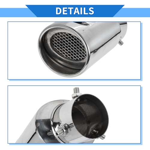 srasakan 車用 マフラーカッター 下向き式 2本出し 口径2.5インチ 落下防止ワイヤー付き エキゾーストチップ ステンレス製 斜めカット 排気管 マフラー パイプ テールパイプ 外装 パーツ カスタム 大型車 軽自動車 取付直径38-53mmに対応 ブルー
