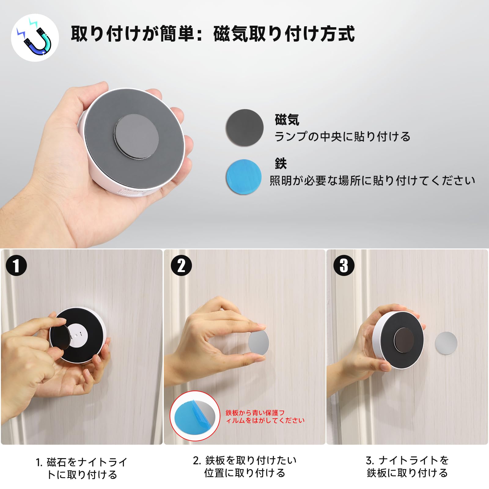 Ryuitsセンサーライト 室内 人感 usb充電と電池式 360°回転 マグネットと貼り付け型 足元灯 夜間ライト ナイト 常夜灯 補助灯 懐中電灯 授乳用 室内照明/玄関/ベット/寝室/廊下/洗面所/客間/キッチン/トイレ/子供部屋などに対応 防災用品 停電対策 自動点灯 消灯 昼白色 2個セット