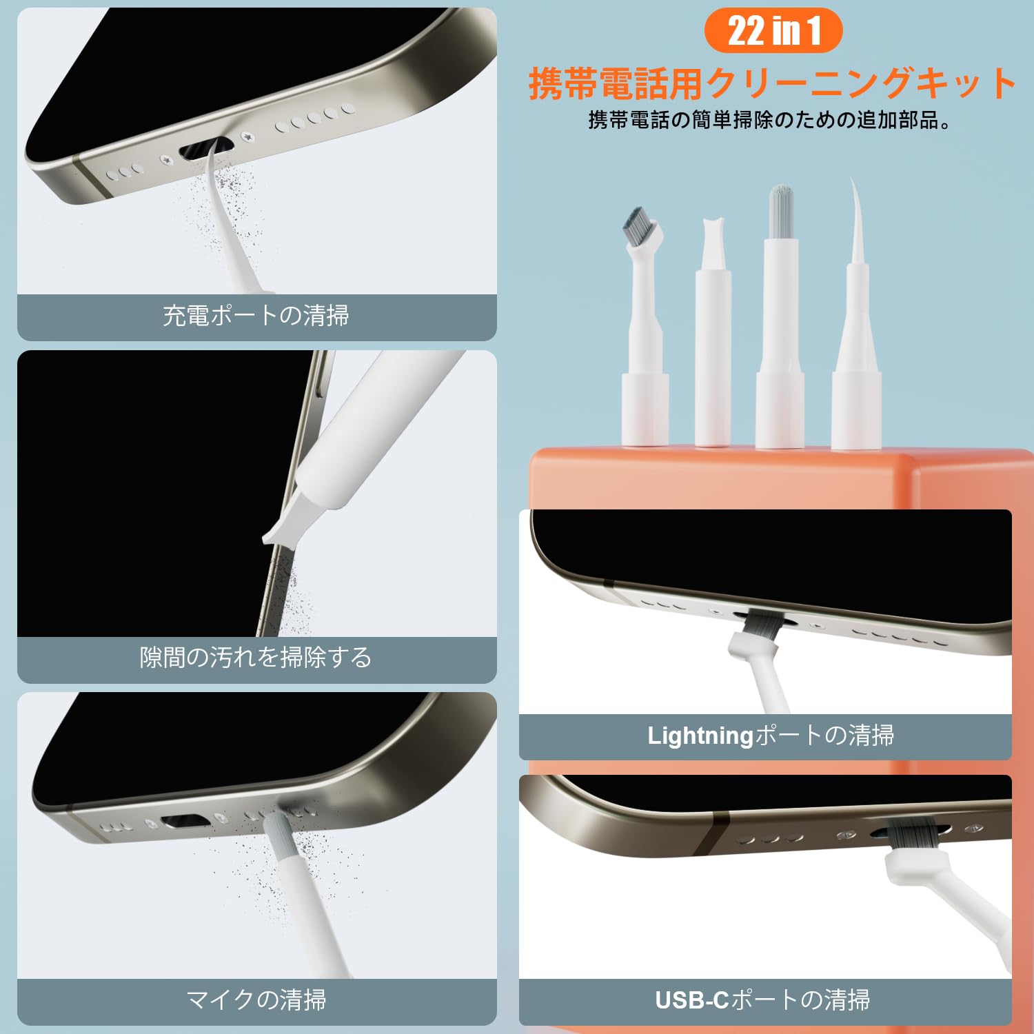 ELectight 22-in-1 多機能クリーニングキット キーボードの清掃 携帯電話用クリーニングツール ポータブル設計 オールインワンクリーニングキット 電子機器清掃用 ススマートフォン/ヘッドホン/イヤホン/カメラレンズ