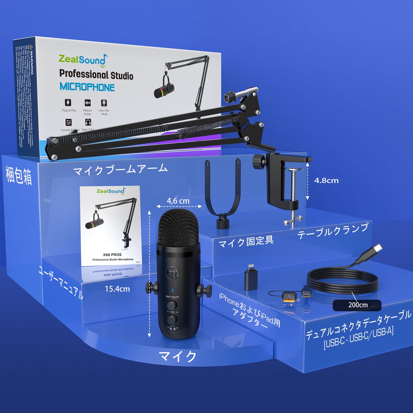 ZeaLSound USBマイクセット、コンデンサーマイク、PCマイク、アームスタンド付属、カーディオイド指向性、プラグアンドプレイ、ワンタッチミュート、エコー機能、YouTube/Zoom/Tiktok/Skype録音、ゲームプレイ、ライブ配信、リモートワーク、オンライン会議に最適、Windows/MacOS/PS4/PS5に完全対応(黒)
