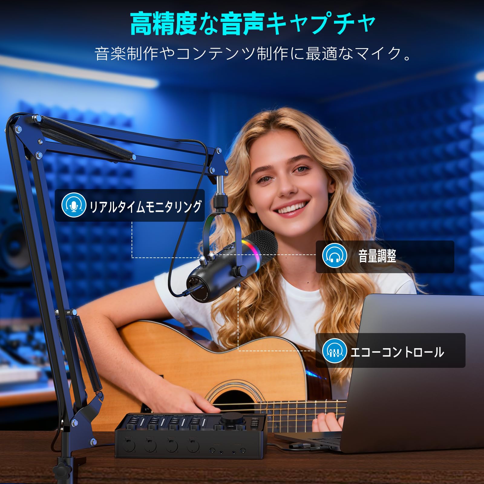 Tone weal UM96 USBコンデンサーマイク - 96kHz/24ビット、カーディオイド、プラグアンドプレイ、ゲインコントロール、ミュートキー、ヘッドホンモニタリング付き ストリーミング/録画/ゲーム/PC/MAC/iOS/Android対応