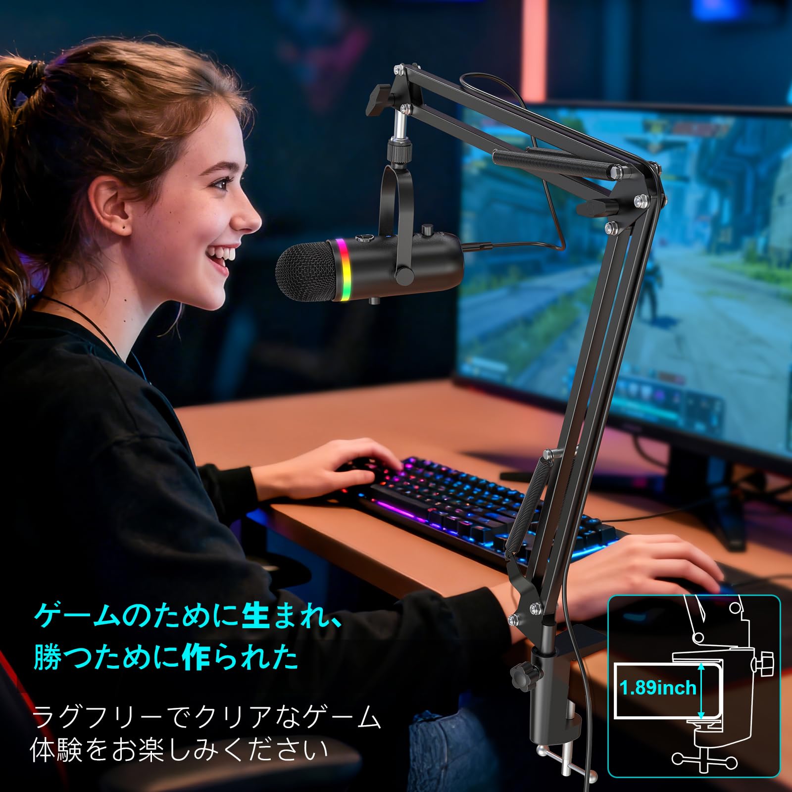ZealSound コンデンサーマイク ゲーミングマイク コンデンサーマイク ストリーミング配信 ノイズ軽減 RGB USBマイク PC MAC ゲーミング マイク 黒 windows