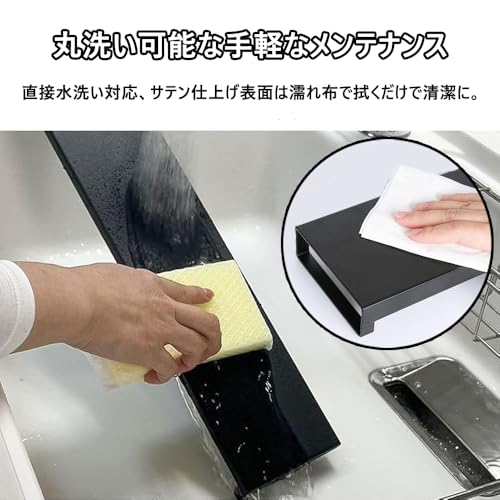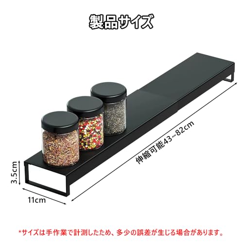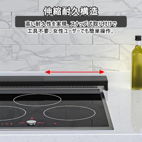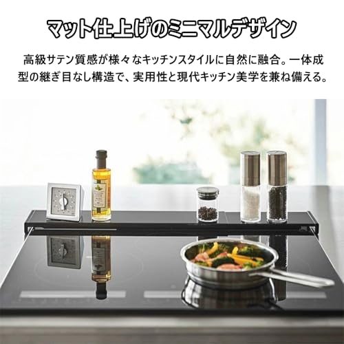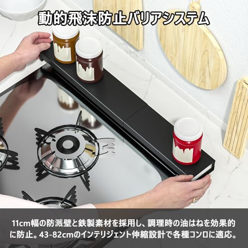 Aquafix 排気口カバー 伸縮式 コンロカバー 金属製 調味料ラック付き 薄型 実用幅43-82cm コンロ奥ラック キッチン用品 油はね防止 邪魔なし(ブラック)