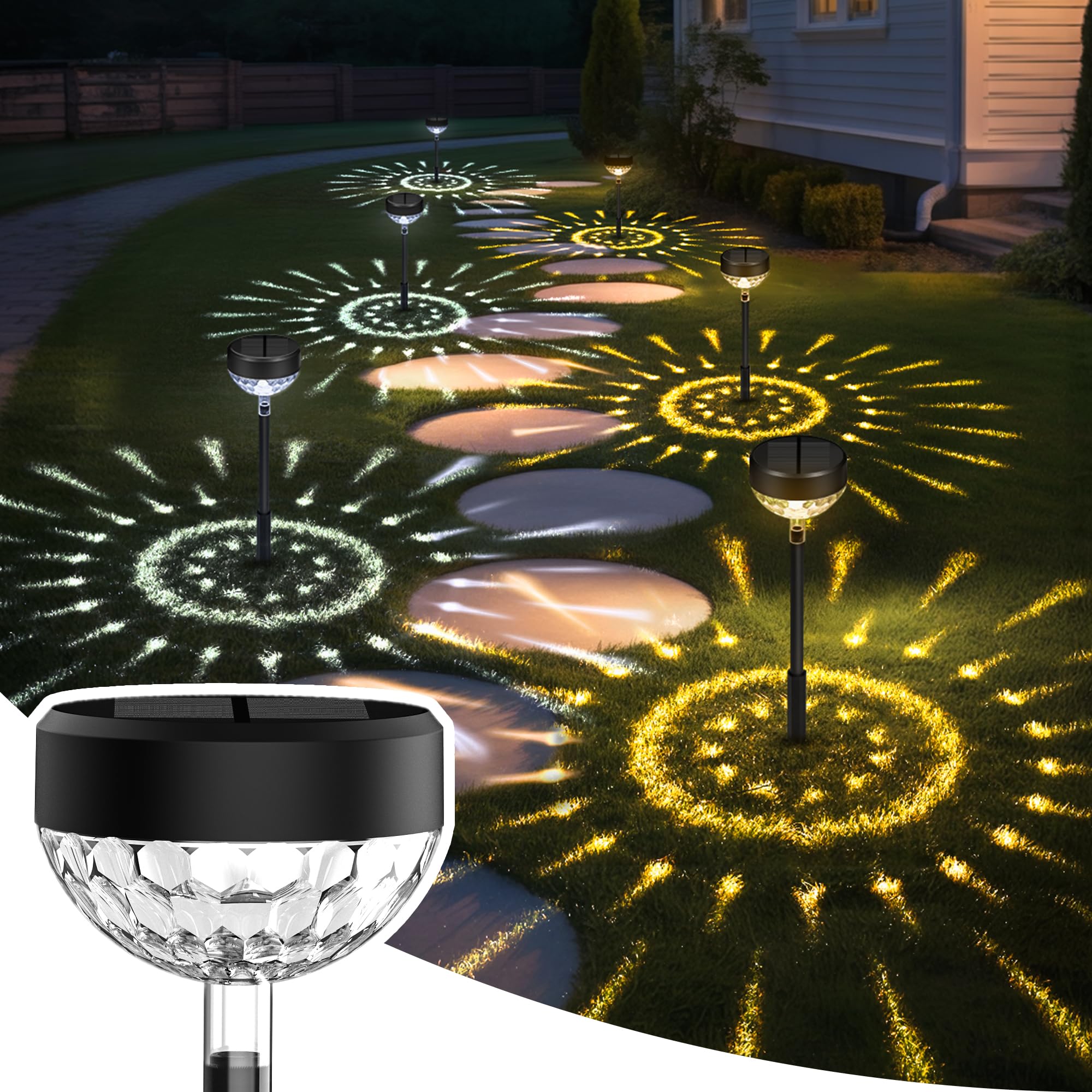 SolpexJP ガーデンライト ソーラーライト 屋外 防水ソーラー パスライト LED通路 庭 アウトドア 太陽光充電 光センサー 高輝度 自動点灯/消灯 おしゃれな光の模様 芝生車道駐車場玄関歩道庭に適用 6set