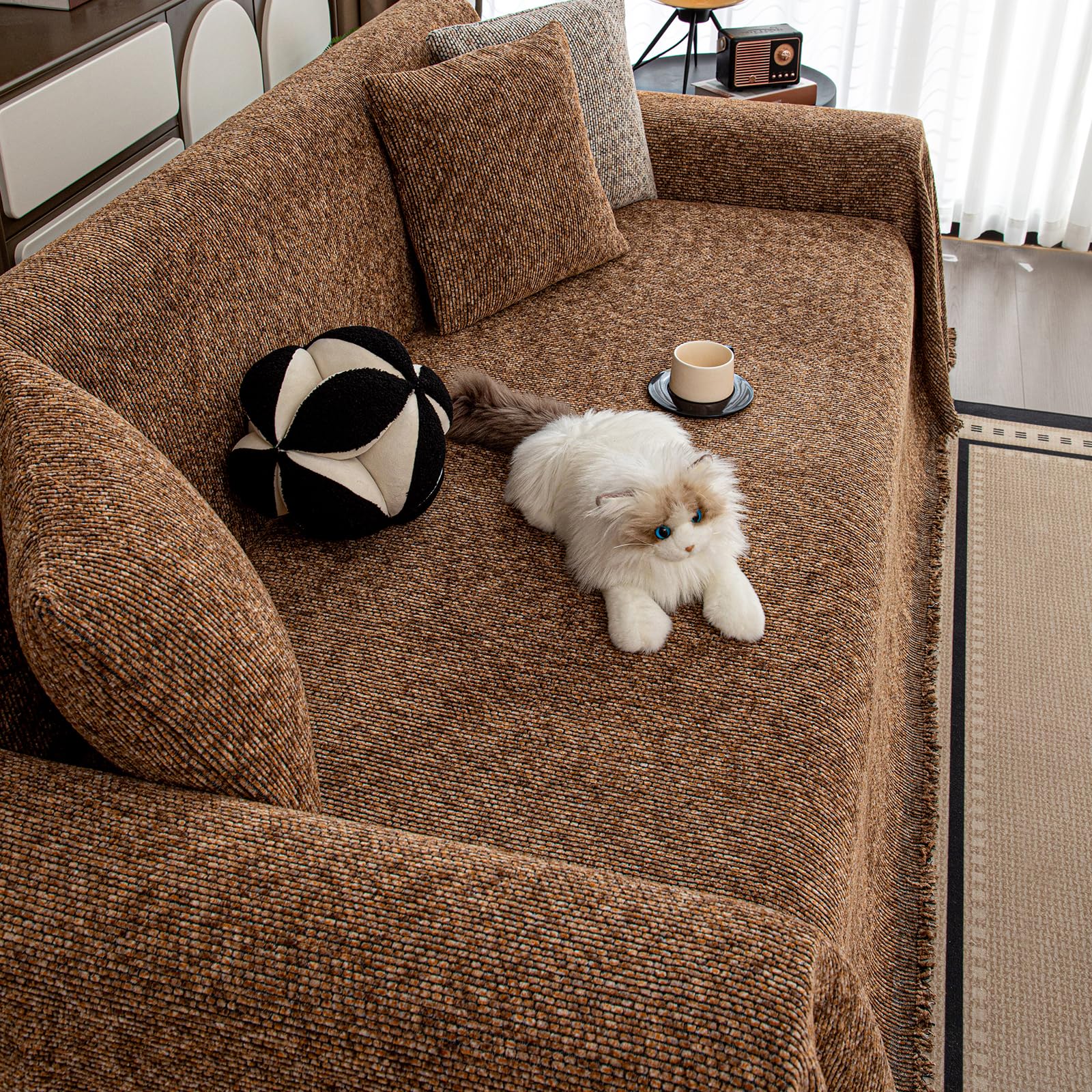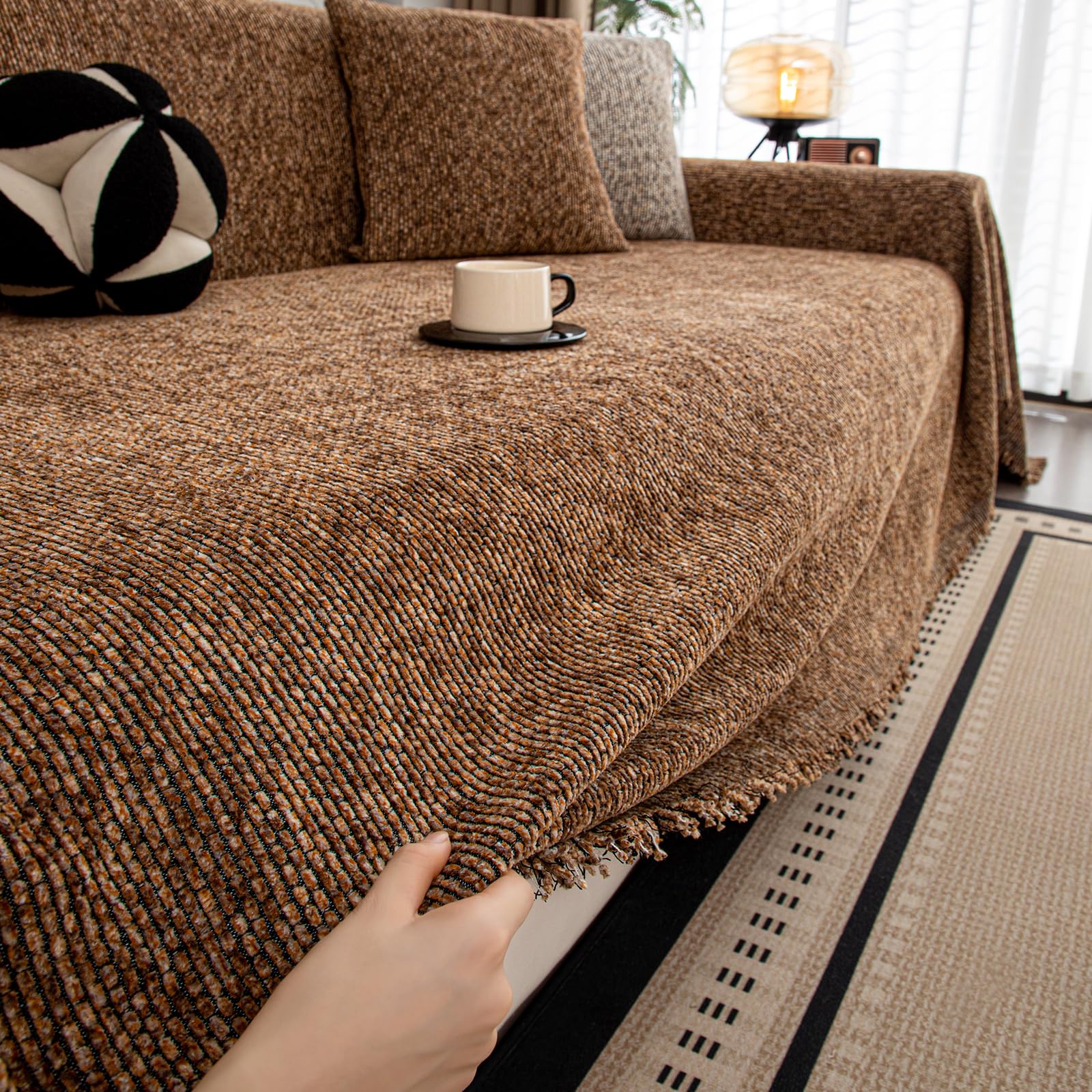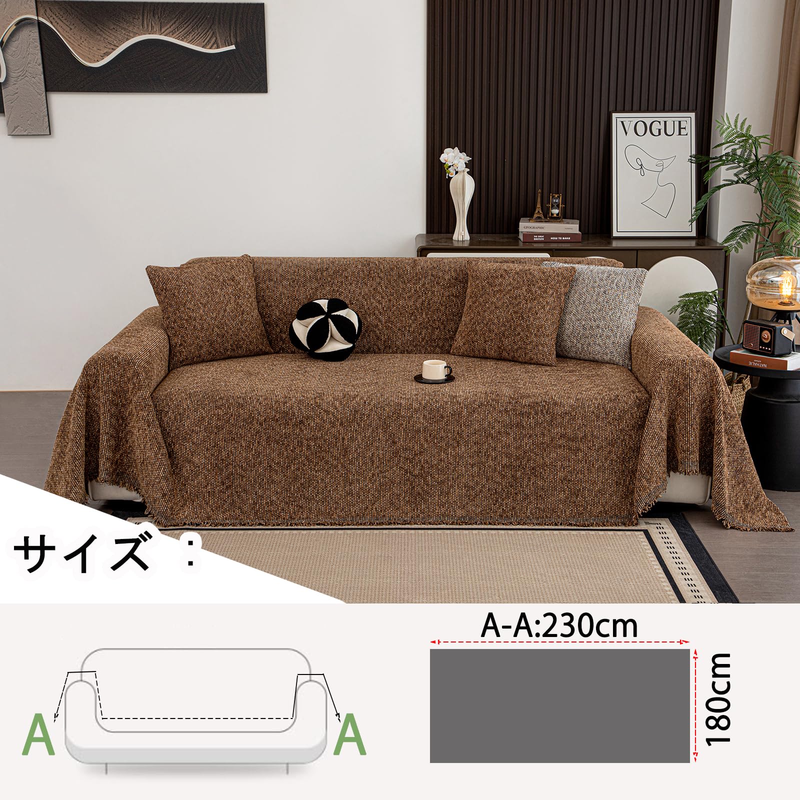 HomeFirst マルチカバー 長方形 ソファーカバー 北欧風 マルチカバー ソファー 肘付き 肘なし リバーシブル ブランケット フリンジ付き 保護カバー 多機能 ベッドカバー 柔らかく 吸湿 通気 洗える 四季通用 300cm