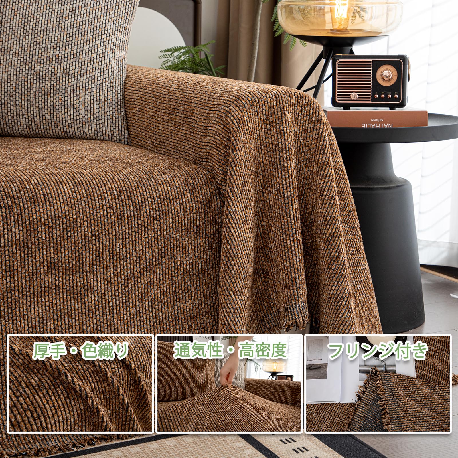 通気性・北欧風 マルチカバー 多彩な・色織り ソファカバー 幅約180cm,長さ約230cm, 厚手 ソファプロテクター フリンジ付き 高密度 長持ちソファスロー チェック柄 ふんわり肌ざわり・洗濯機対応 ソファーベッドカバー リビング用・ソファ用