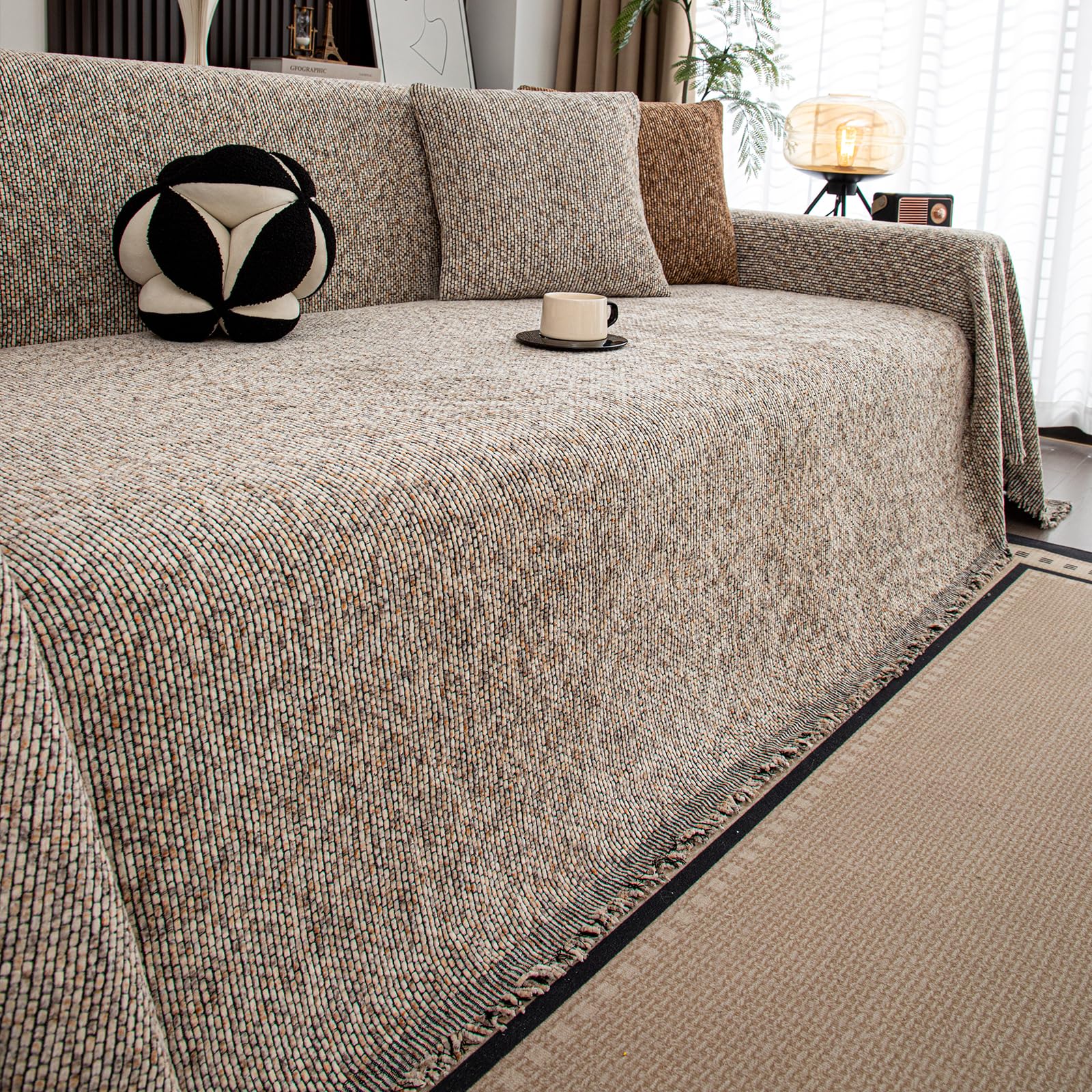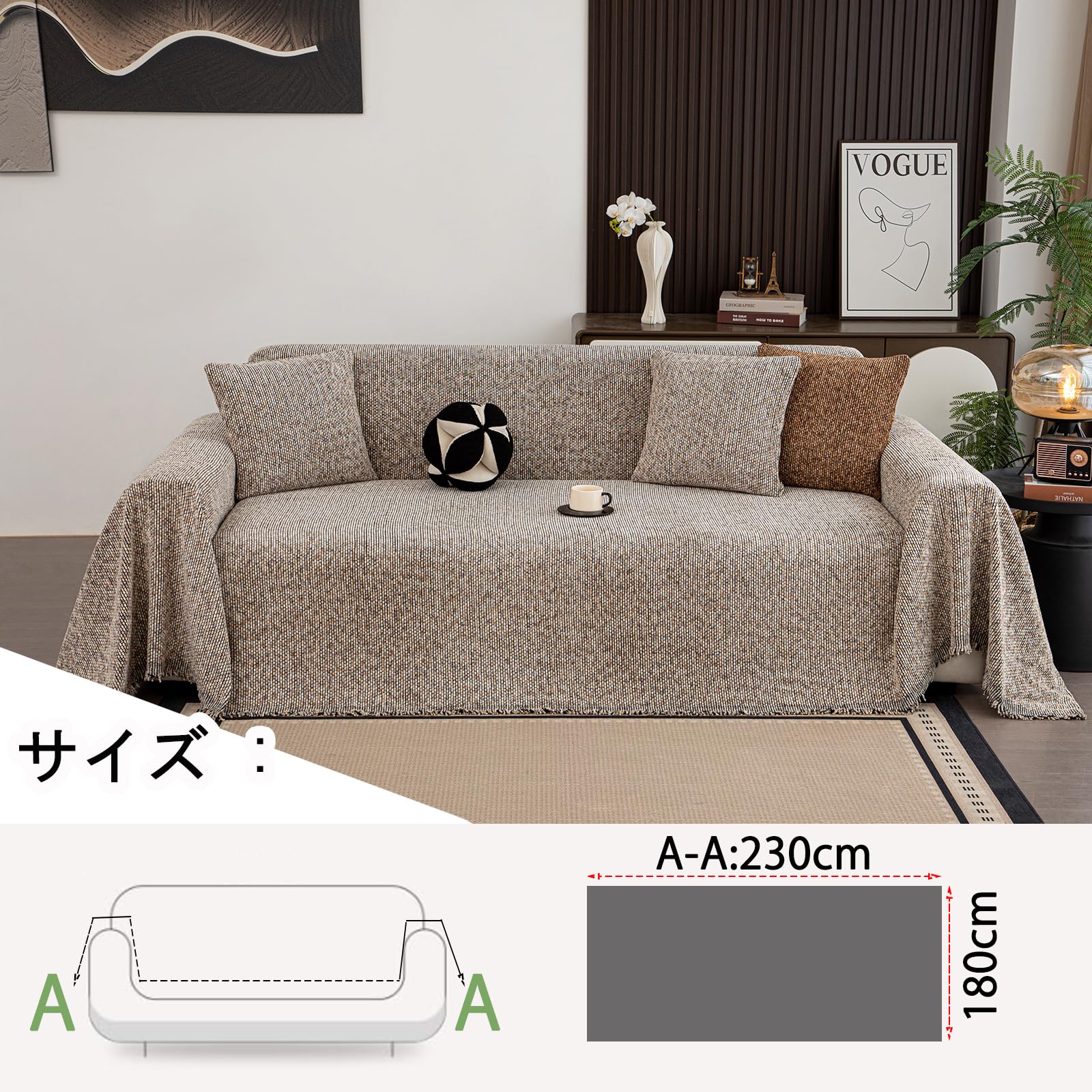 TMVOK マルチカバー ソファカバー おしゃれ 北欧風 長方形 ソファーかばー ブランケットフリンジ付き 汚れ防止 保護カバー 無地 綿 23人掛け 肘付き 肘なし カウチカバー テーブルクロス リバーシブル 大きい 水洗い 四季通用 180*230cm