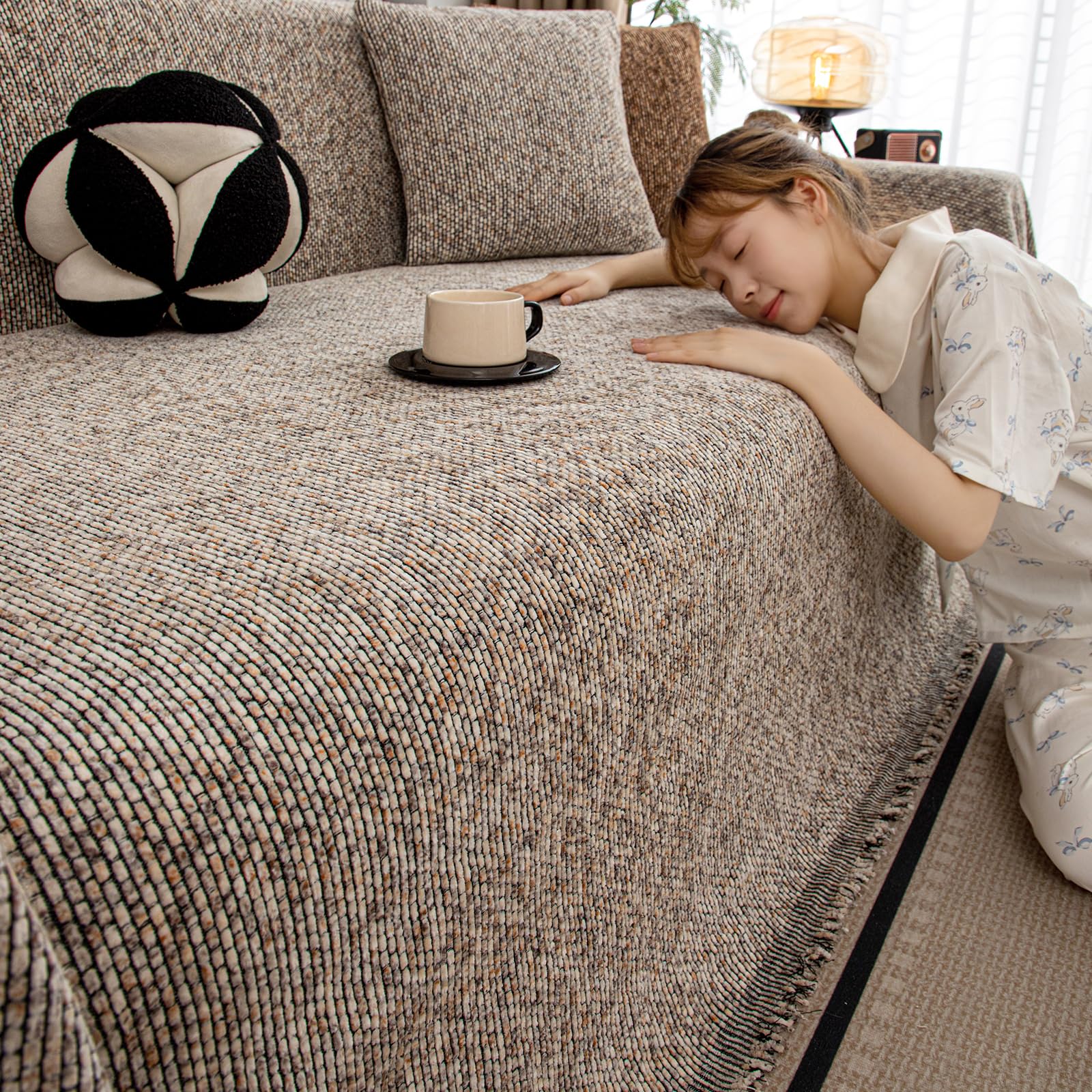 TAOCOCO ソファパッド ソファカバー ソファーシート マルチカバー ベッドカバー 防水 リバーシブル 犬猫対策 毛髪不粘着 防塵 汚れ防止 傷防止 爪とぎ防止 腕白防止 四季適用 撥水加工 丸洗い可能 ベッド ペットホーム ブランケット カウチ L字 ソファー 寝椅子などに適しています(カラメル色、134*210センチ)