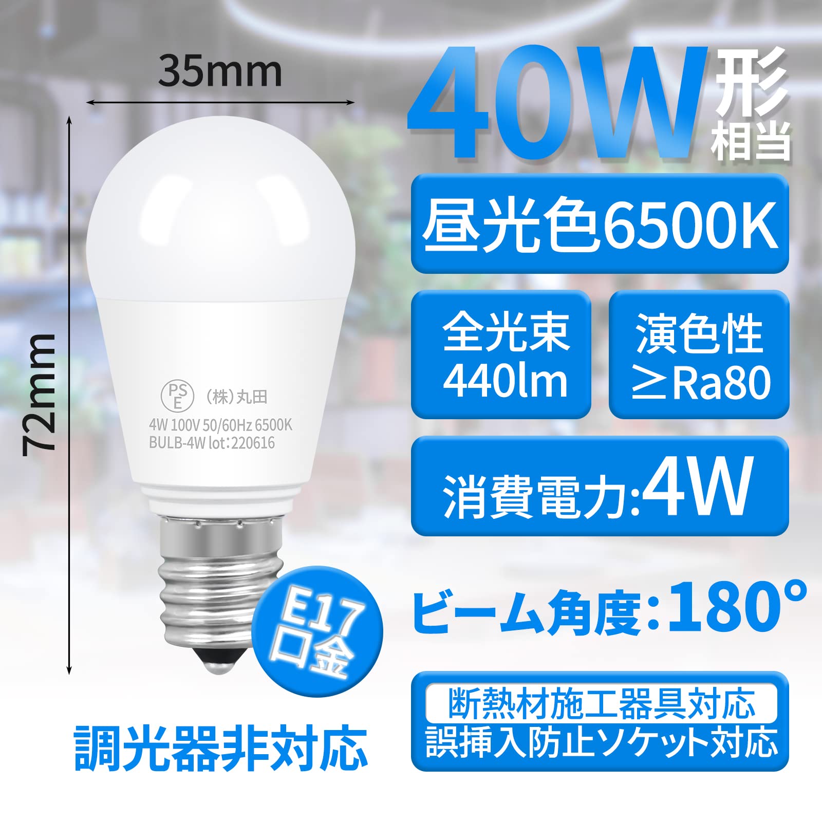 xydled LED電球 E17口金 40W形相当 440lm 昼光色 6500k ミニクリプトン電球 ミニランプ形 小型電球 広配光タイプ 調光器非対応 密閉器具対応 断熱材器具対応 PSE認証済み 6個セット (昼光色)