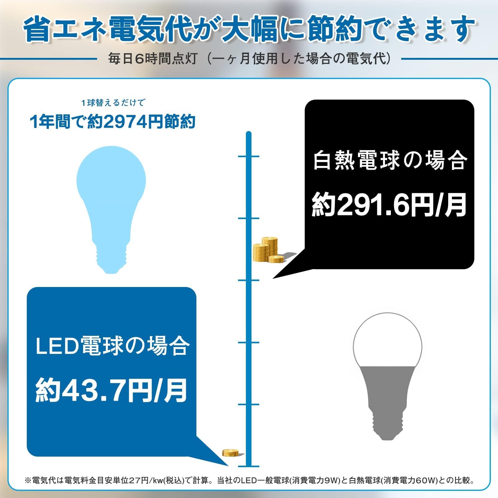xydled LED電球 E26口金 60W形相当 9W 900lm 昼白色 5000K 広配光タイプ 高演色 省エネ 調光器非対応 密閉器具対応 断熱材器具対応 PSE認証済み 6個セット(昼白色)