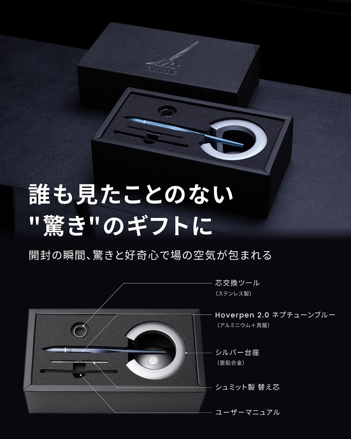 novium Hoverpen Interstellar 宙に浮くペン ボールペン 高級 男性への誕生日や昇進祝い、クリスマスギフトに最適 ホバーペン スペースブラック
