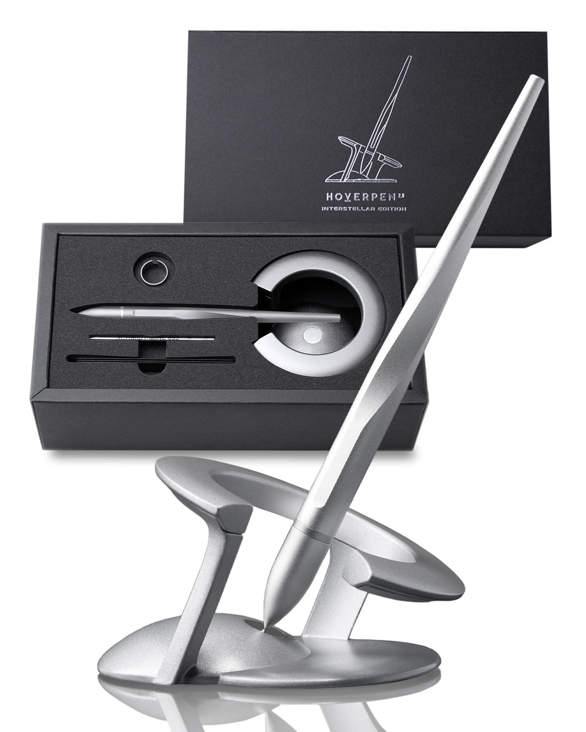 novium Hoverpen Interstellar 宙に浮く無重力ペン 男性への誕生日や昇進祝い、クリスマスギフトに最適 デスクを彩るオブジェにも スターライトシルバー ボールペン