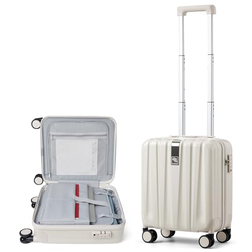 [Hanke] 16サイズ キャリーケース 機内持ち込み スーツケース 2泊3日 小型 超軽量 耐衝撃PC材質 静音回転自在ホイール ショートトラベルスーツケース tsaロック(sサイズ/アイボリーホワイト)