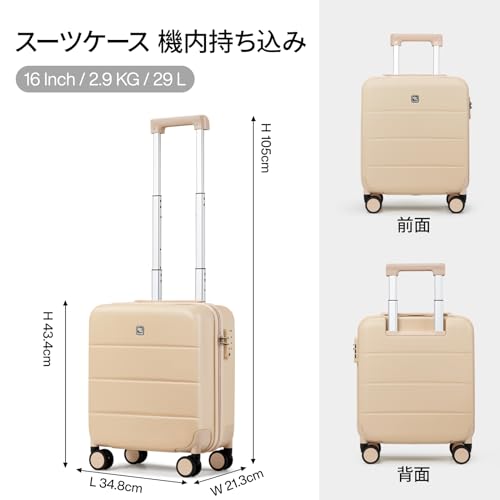 [Hanke] 16サイズ 1泊2日 キャリーケース ssサイズのみ アルミ スーツケース 機内持ち込み PC100% 素材 耐衝撃 軽量 小型 スーツケース 片面開き ハード TSAロック 静音キャスター キャリーバッグ 2泊3日(ブラック)