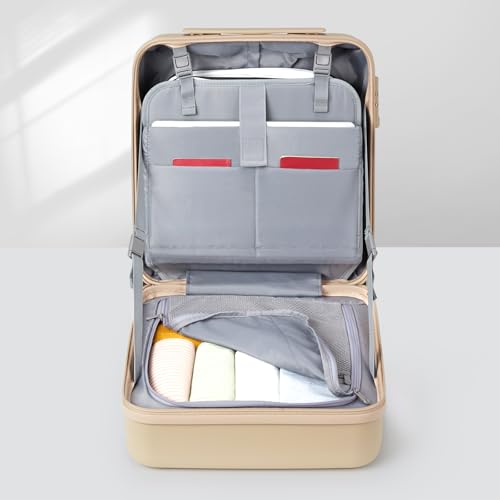 [Manatsulife] キャリーケース スーツケース 旅行 出張 超軽量 ssサイズ フロントオープン ミニ型 カップホルダー付き USBポート付 乾湿分離 ロック付 静音 耐衝撃 ビジネス おしゃれ XBM02 (ホワイト, XS(33L,横型))
