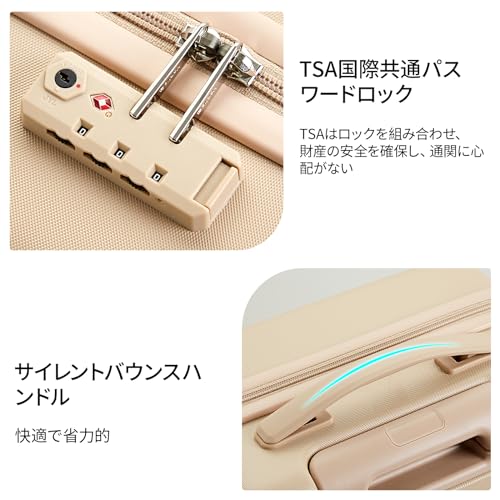 [Yuweijie] スーツケース キャリーケース フロントオープン 拡張機能付き キャリーバッグ 機内持ち込み カップホルダー付き usbポート付 tsaロック キャスター ストッパー付き 軽量 静音 人気 旅行 ビジネス 出張 Mサイズ 50l-60l, 2泊-4泊, White