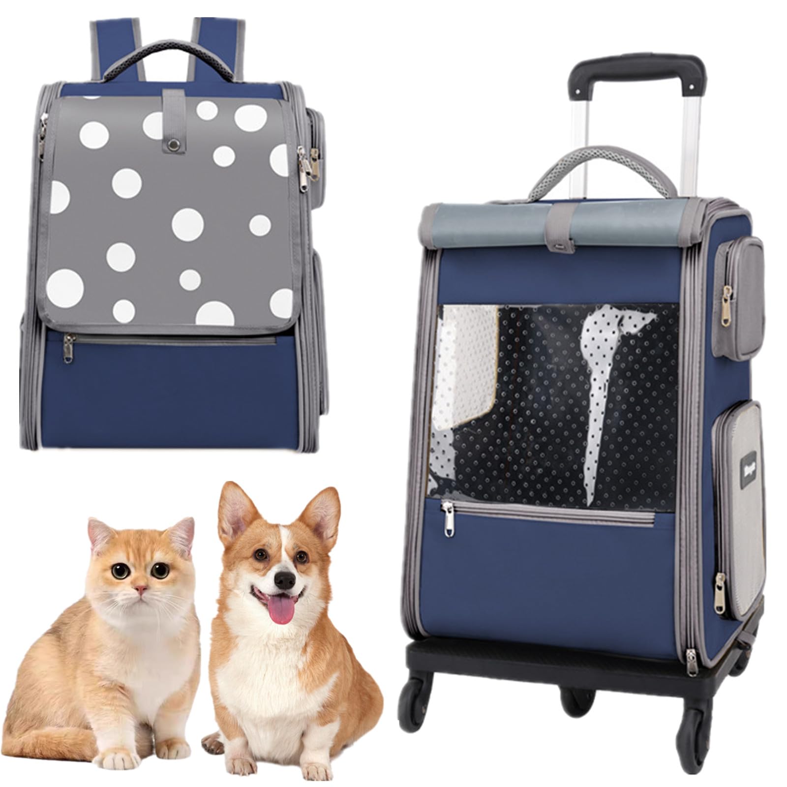 ペットキャリー リュック キャスター付き 3way多機能設計 小型犬 猫対応 キャリーケース 分離式&折り畳み可能な車輪 猫用キャリーバッグ