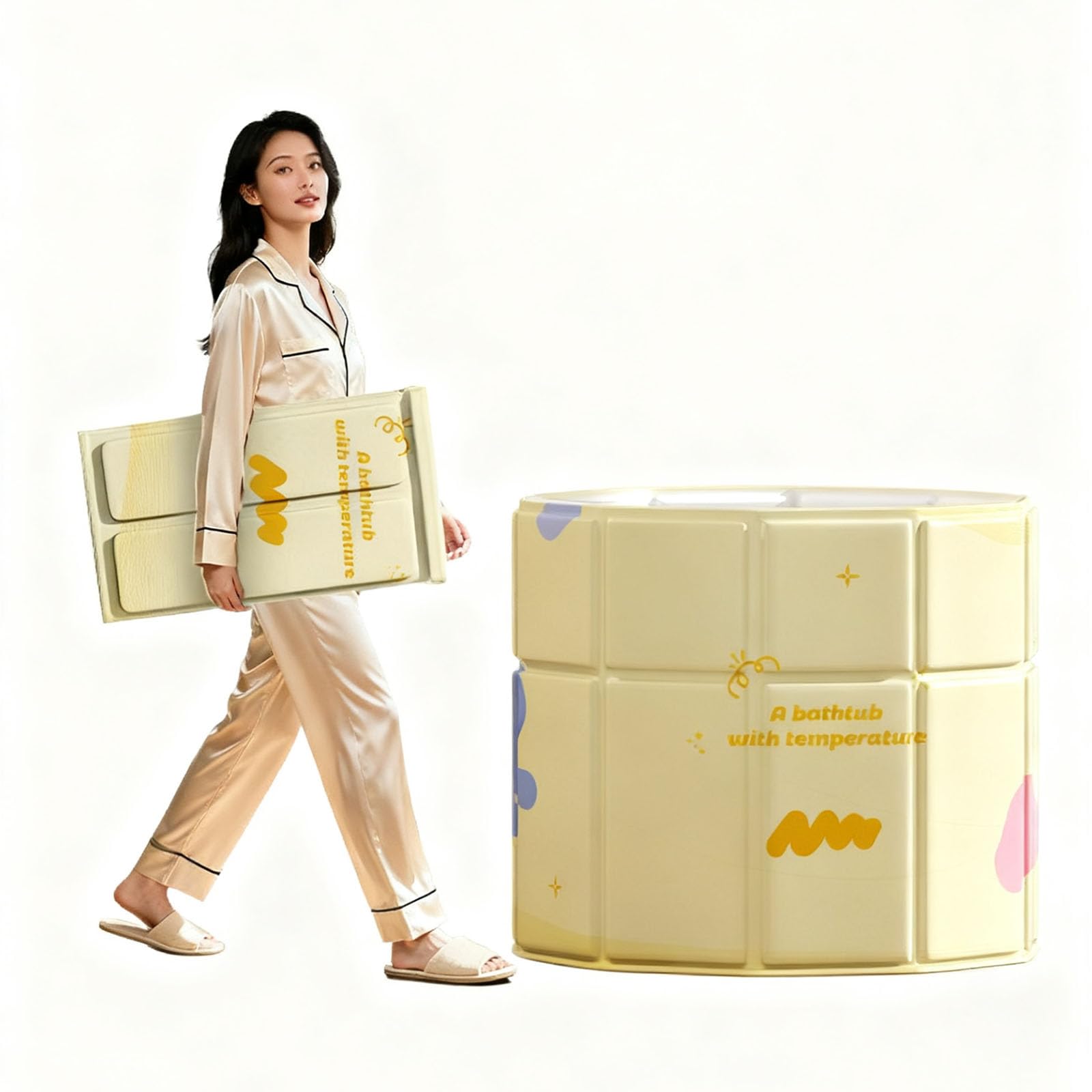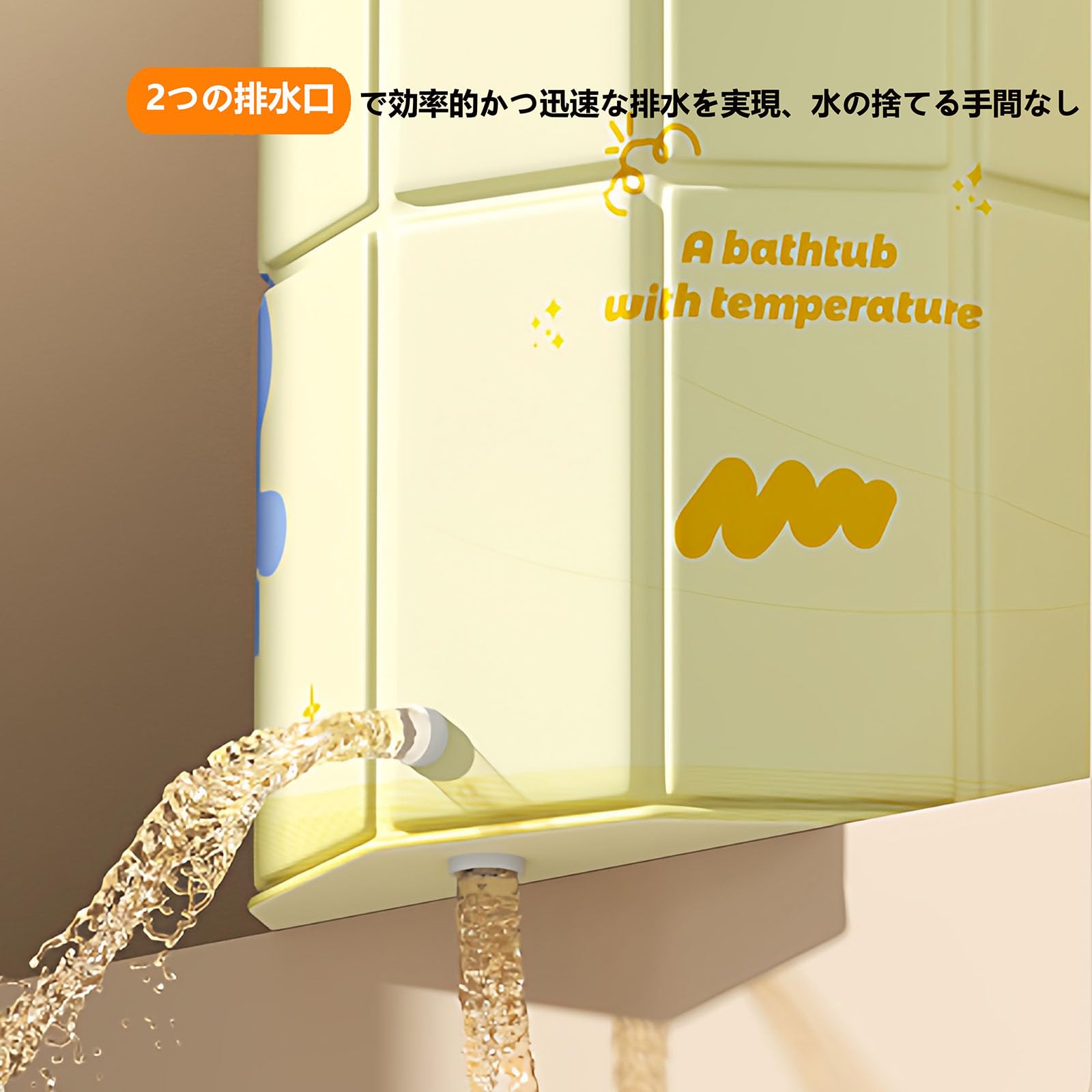 折りたたみ浴槽 ポータブルバスタブ ポータブル浴槽 折り畳み浴槽 折り畳み風呂 簡易バスタブ 露天風呂 キッズ 子供 大人用 キャンプ 家庭用 組立不要 保温 コンパクト 収納便利 持運び便利 耐久性 簡易風呂 浴槽 (イエロー, 1.2m)