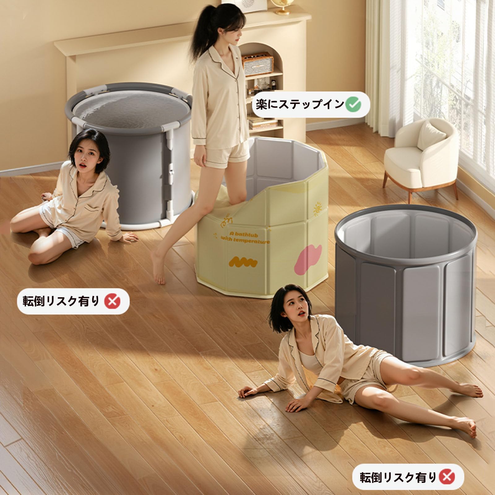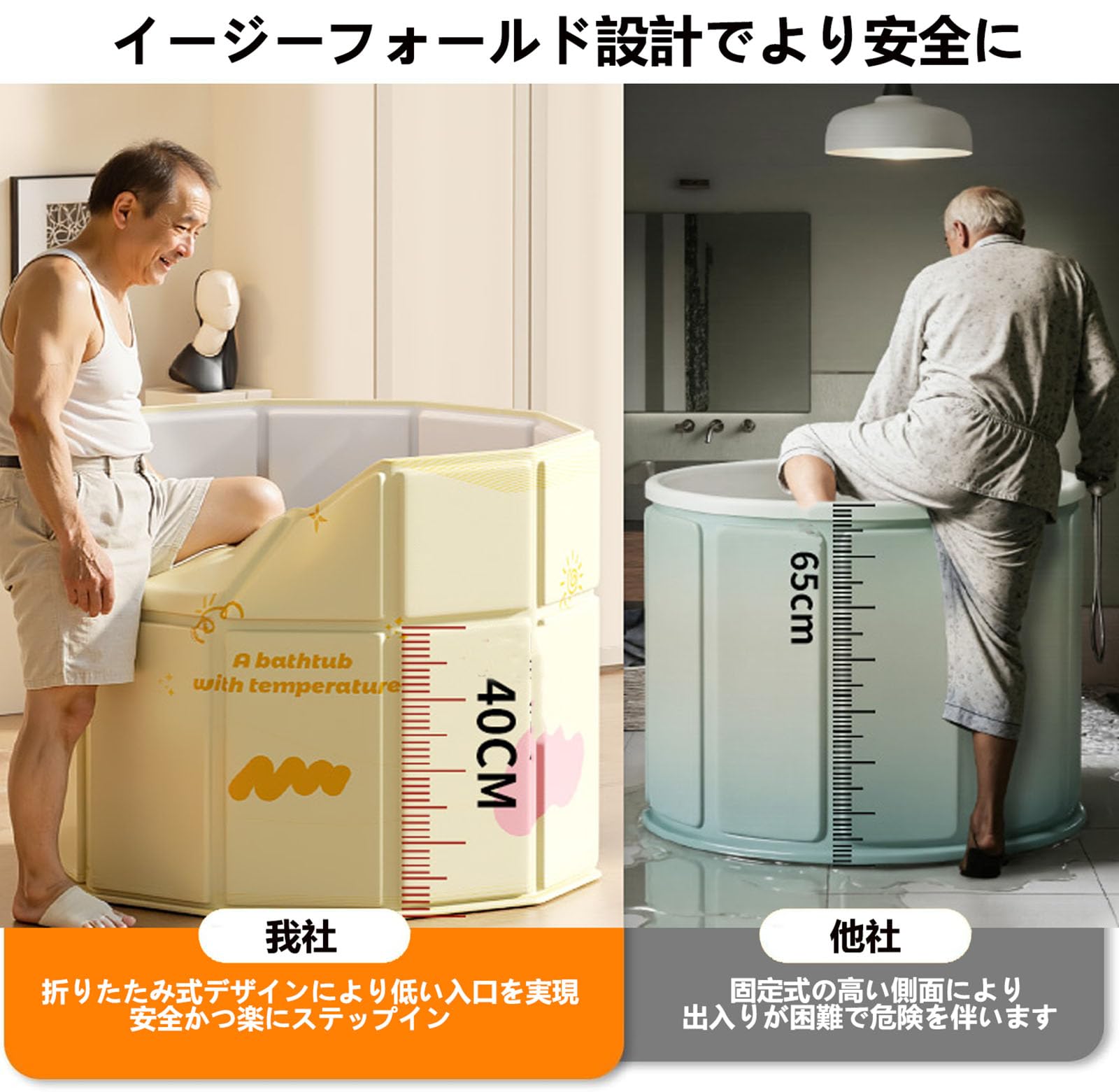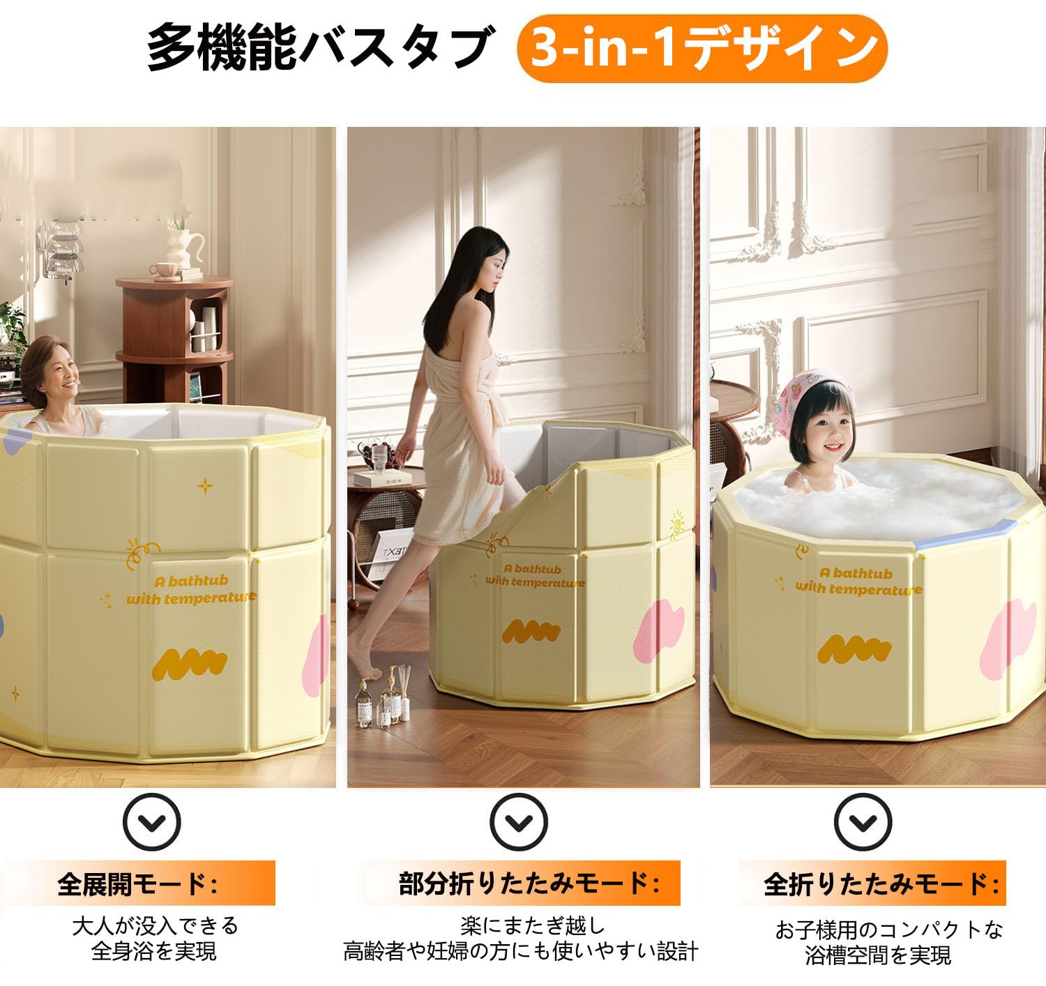 ポータブルバスタブ 折り畳み浴槽 簡易風呂 露天風呂 水風呂 コンパクト 組み立て不要 収納便利 長時間保温 子供 大人用 家庭用 ポータブル浴槽 (ゴールド)