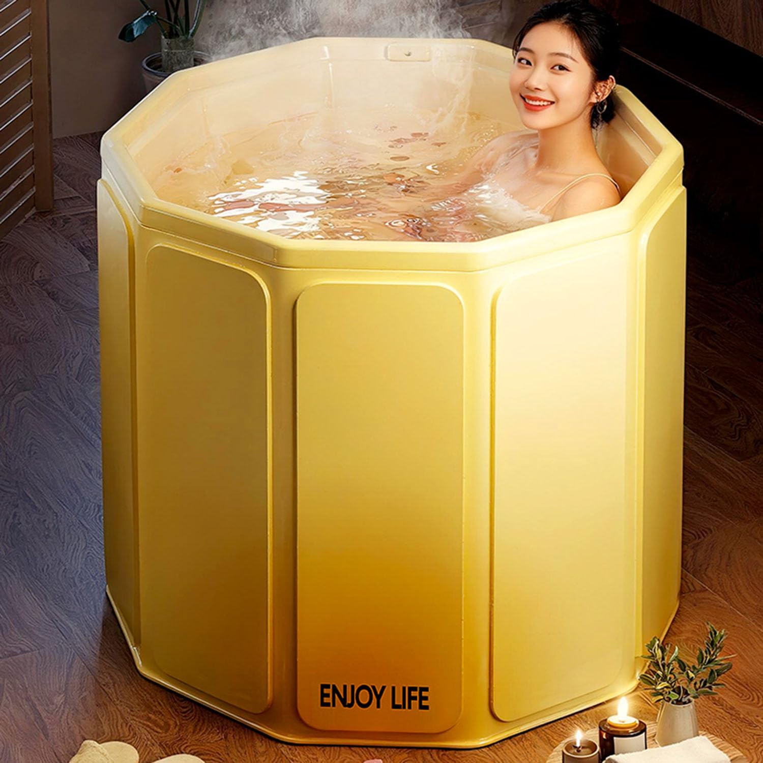 ポータブルバスタブ 折り畳み浴槽 簡易風呂 露天風呂 水風呂 コンパクト 組み立て不要 収納便利 長時間保温 子供 大人用 家庭用 ポータブル浴槽 (ゴールド)