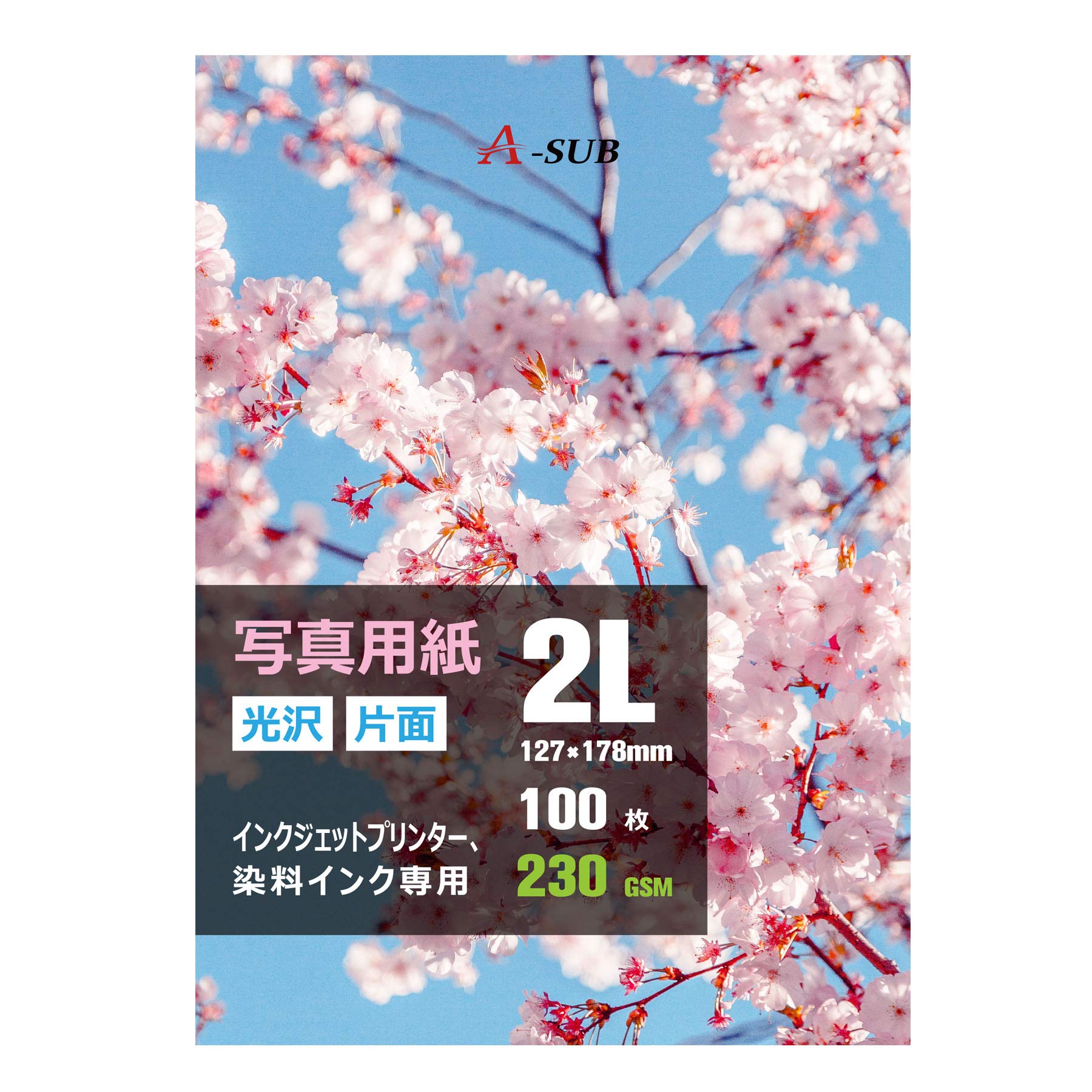 A-SUB 写真用紙 超きれいな光沢紙 0.28mm厚手 2L判 100枚入り インクジェットプリンター用紙