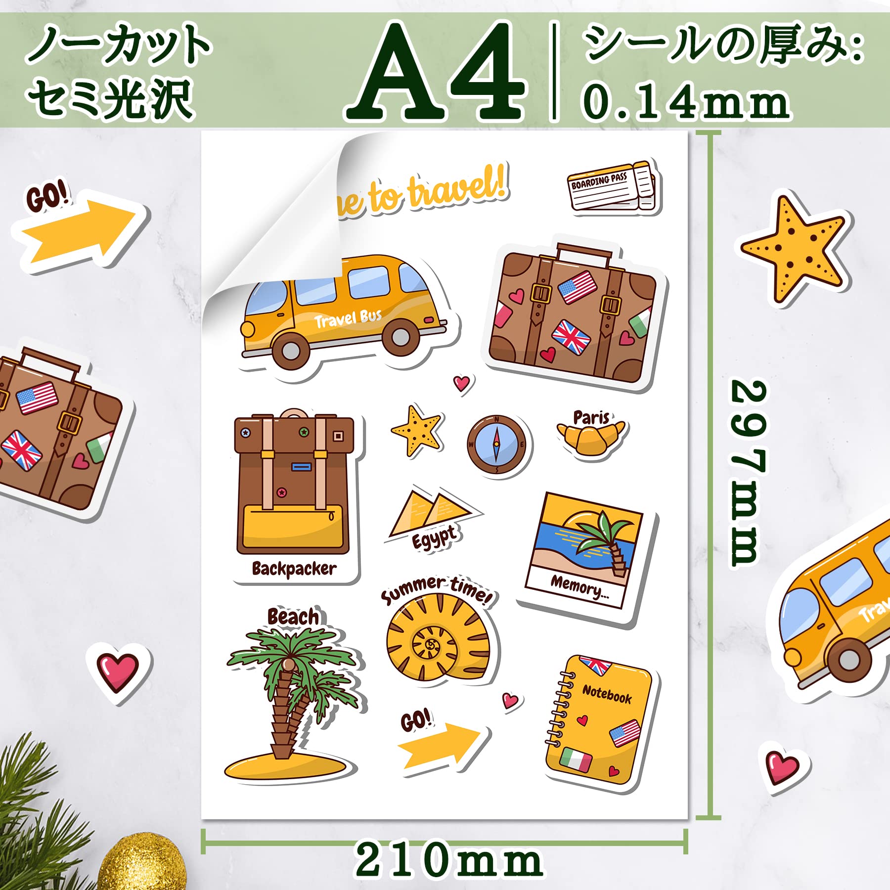 A-SUB ラベルシール 光沢フィルム 透明 耐水 インクジェット15枚 ノーカット 手作りステッカー