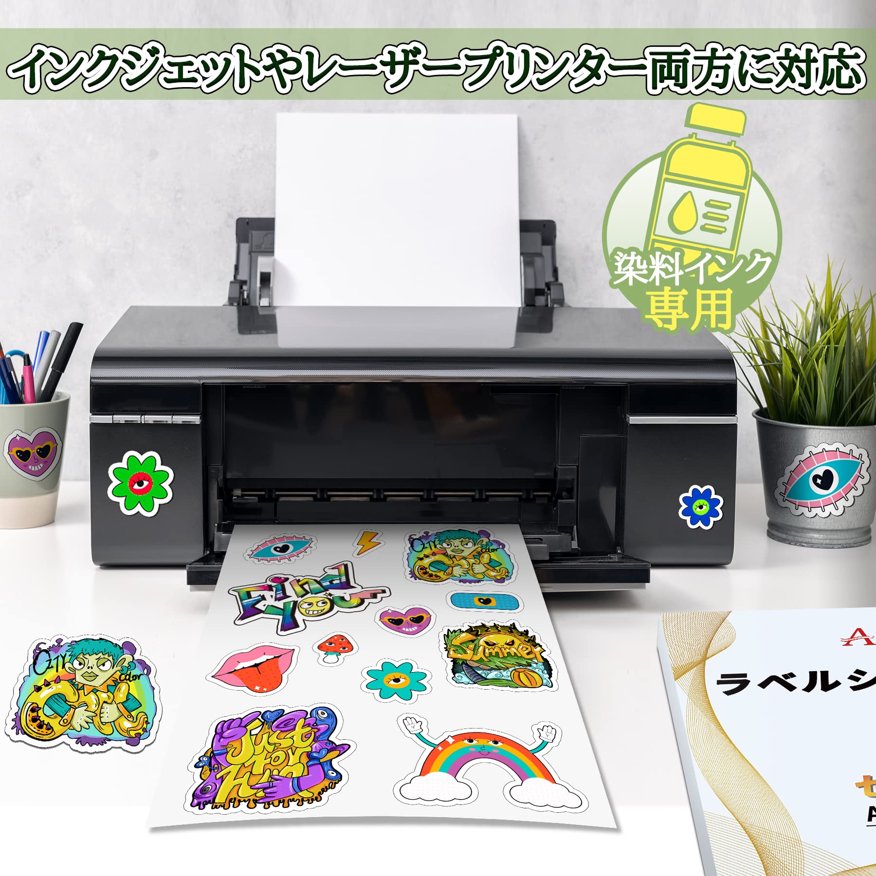 A-SUB ラベルシール A4 セミ光沢紙 手作りステッカー用紙 半光沢シール用紙 ノーカット貼れる 20枚入り インクジェット・レーザー用シール紙 ホワイト