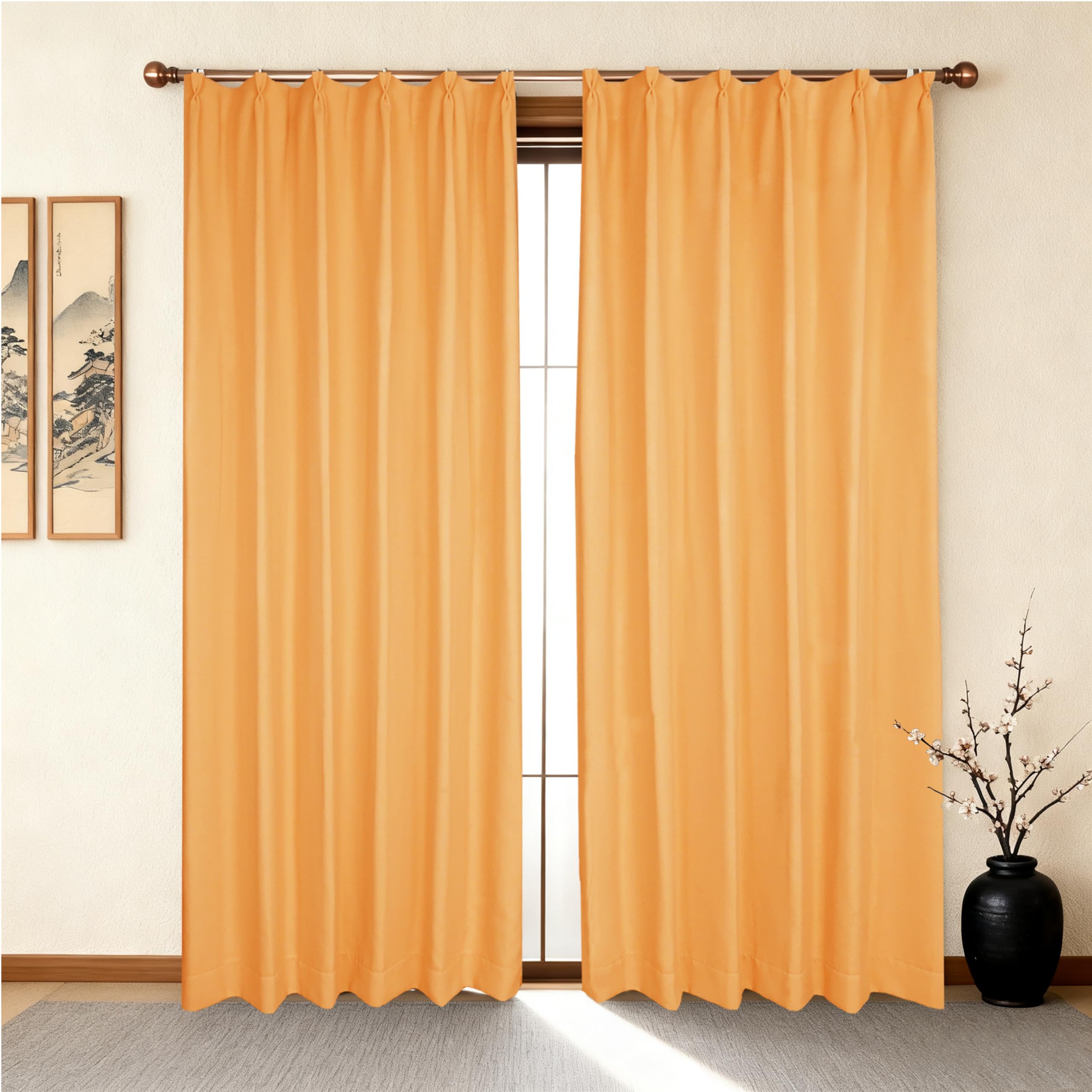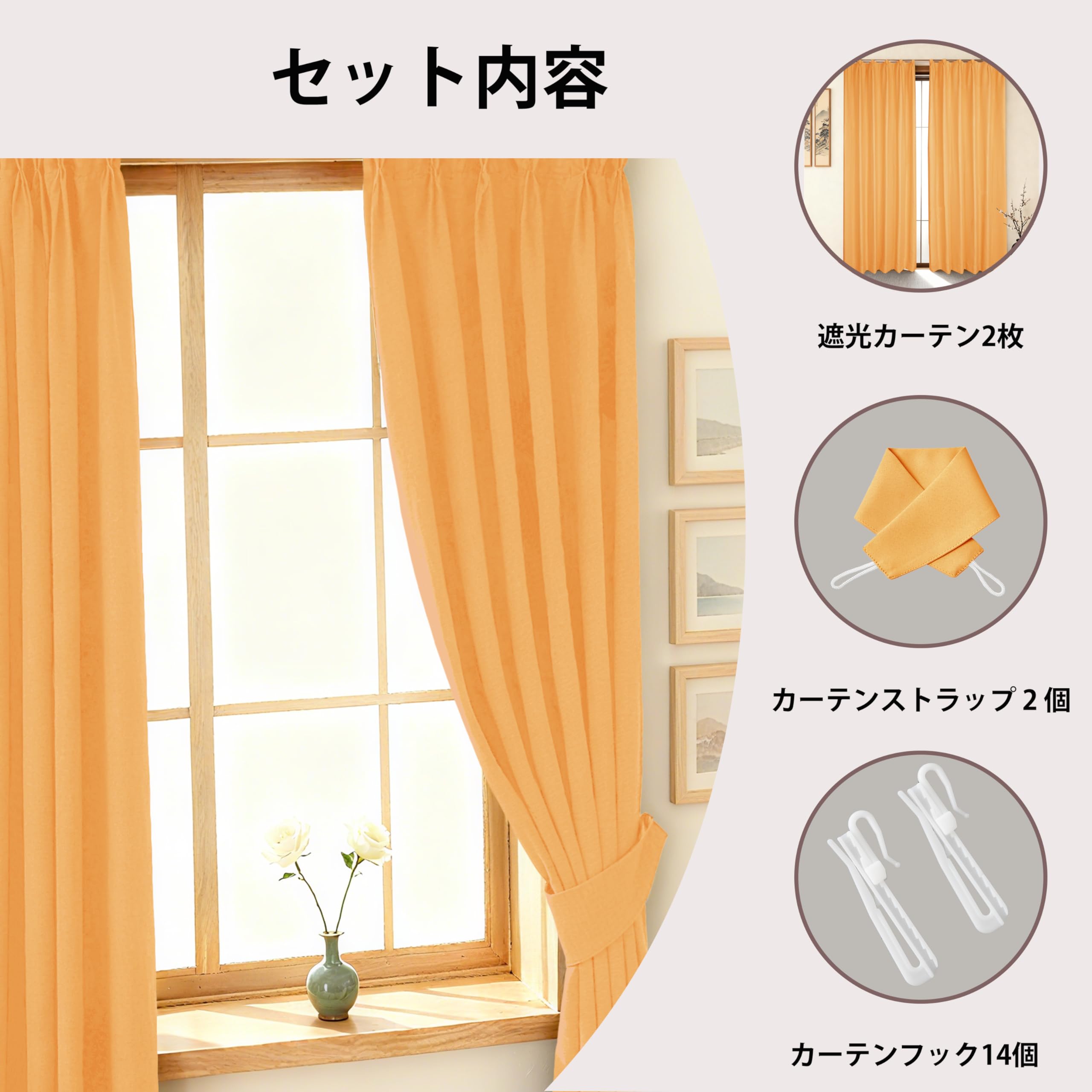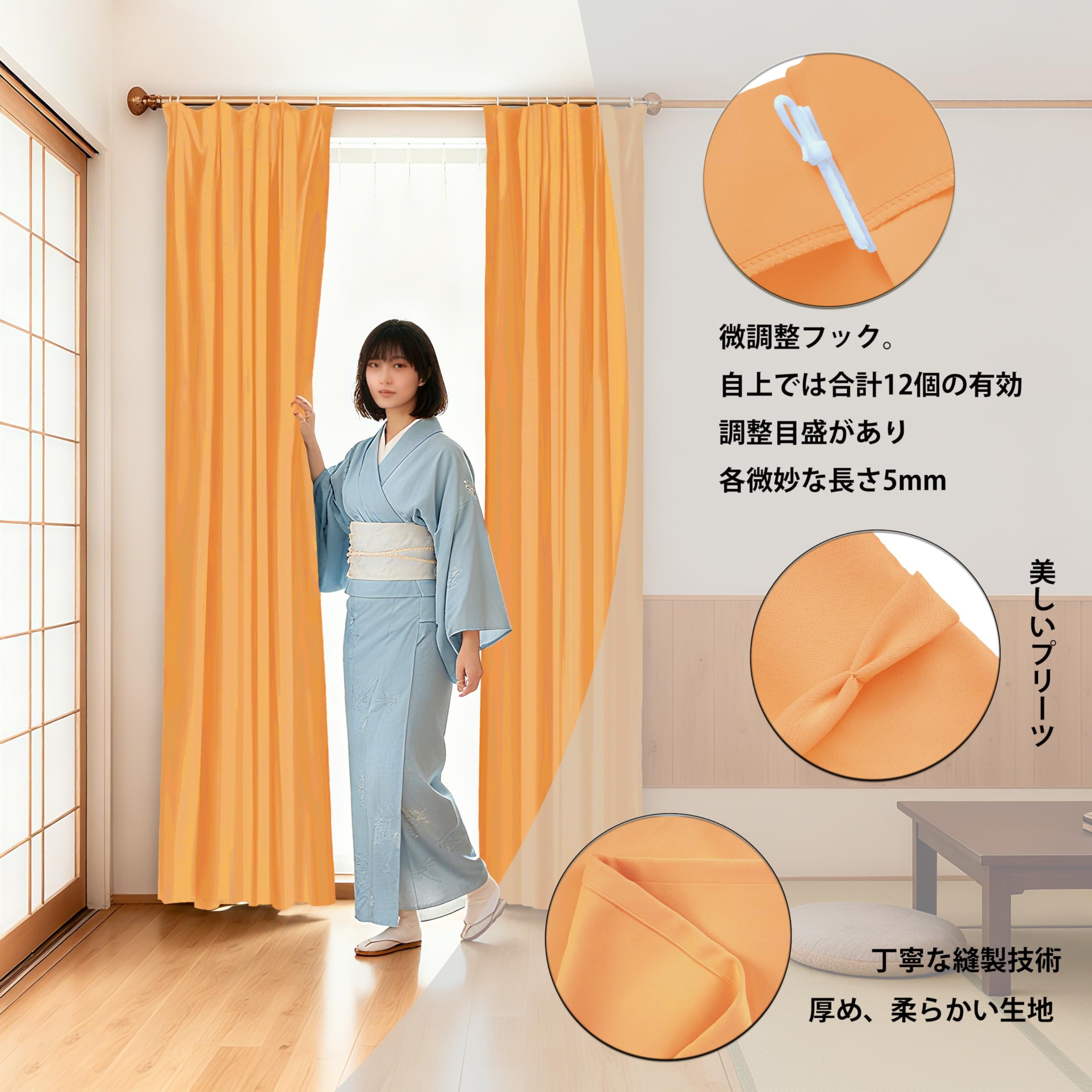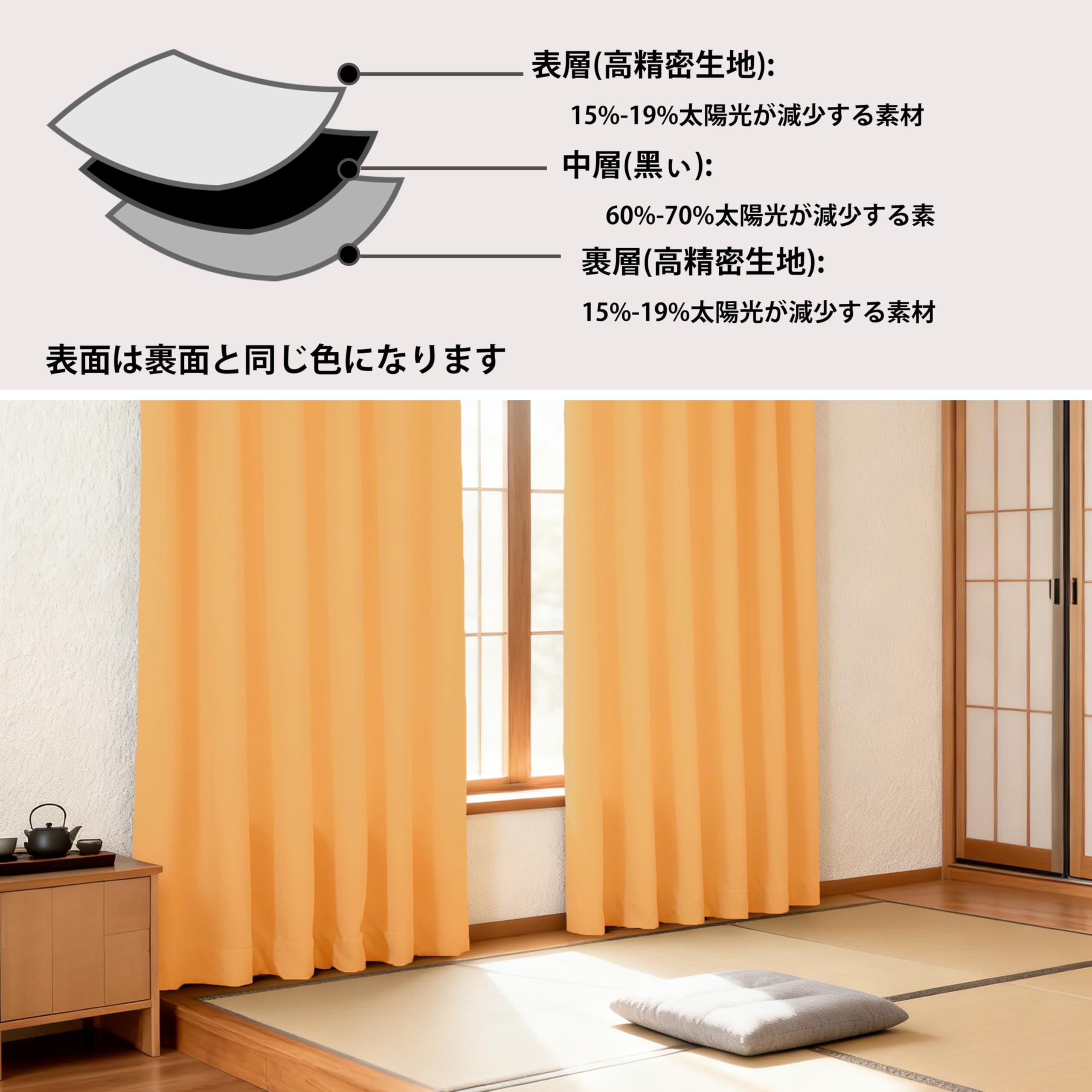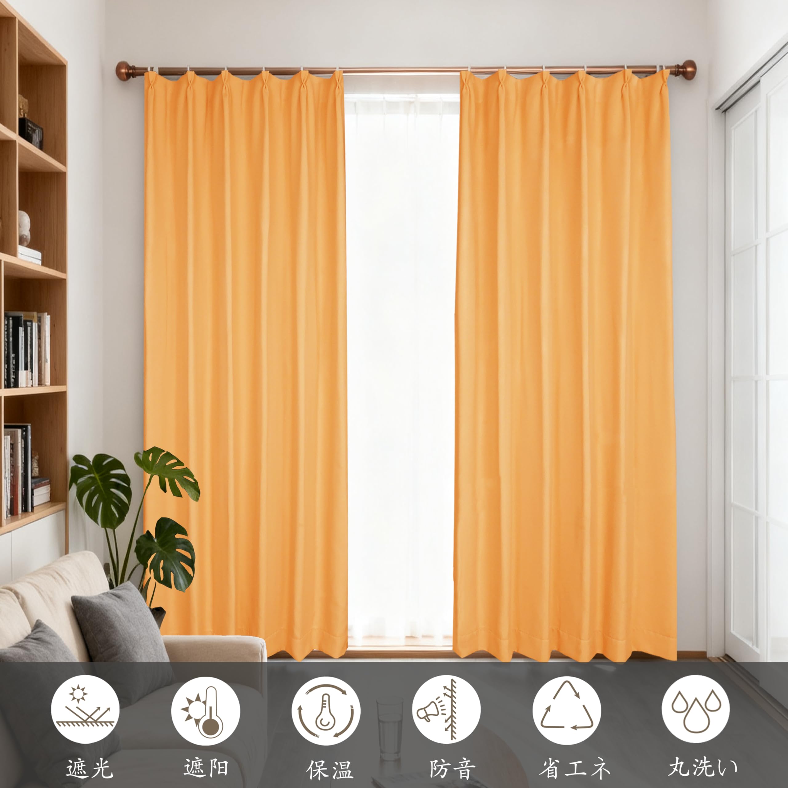 【Yunlinhui】一级遮光カーテン2枚組 無地 厚手のカーテンは効果的な断熱 保温 防音 吸音 ファッションカーテンには形態記憶加工が施されている 省エネ 洗濯可能 昼夜遮蔽 リビング用 寝室 部屋 コーヒーショップ 小窓 (幅100x丈200cm, オレンジ)