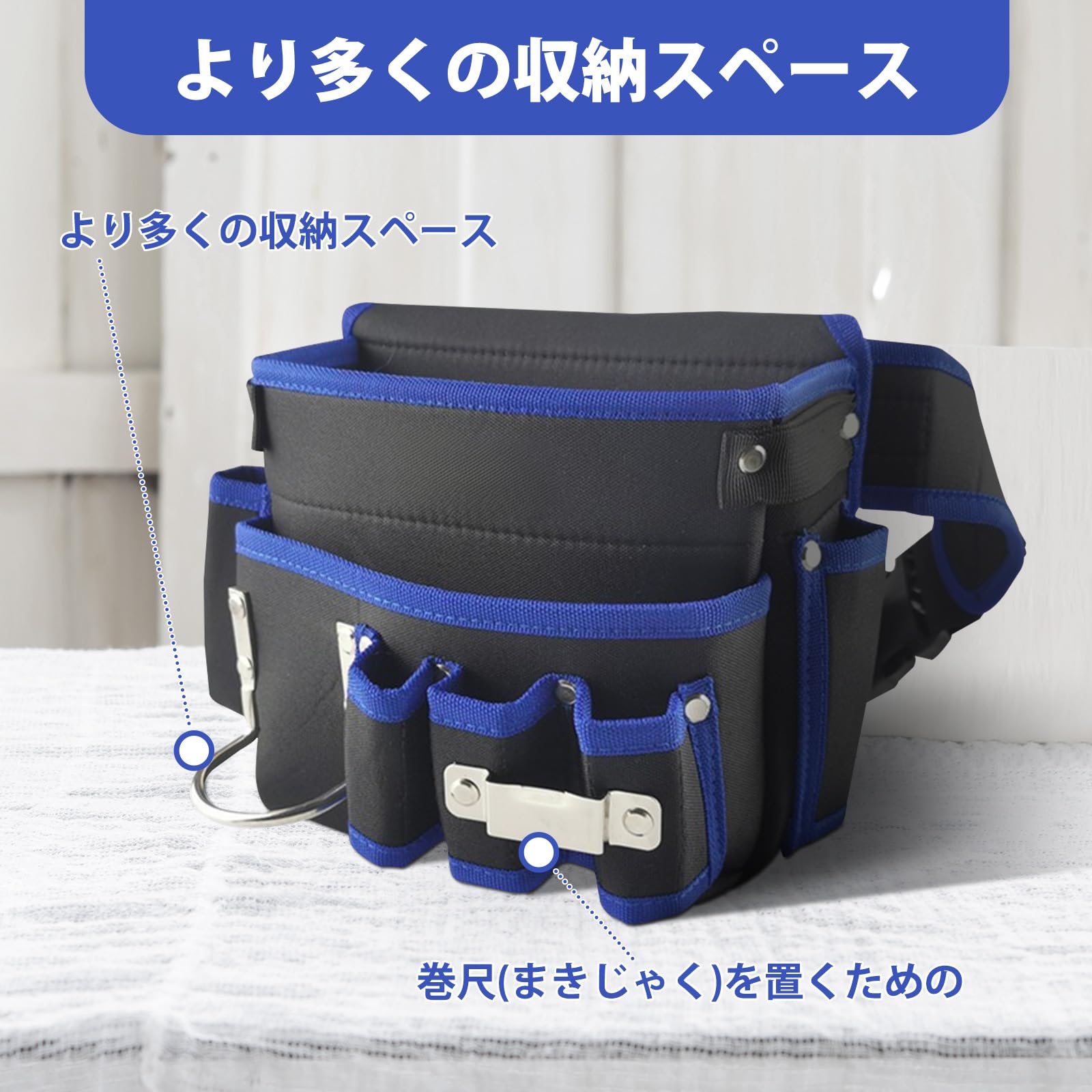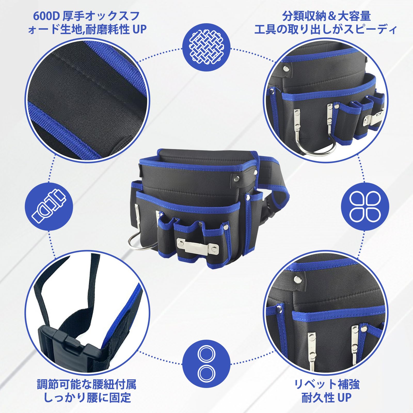 Yajuyi 内装用 道具用 腰袋 工具袋 工具入れ 小物入れ ウエストバッグ 腰収納袋 ホルダー オックスフォード布 防水・ 耐摩耗 多機能 大容量工具差し入れ 電動工具入れ ガーデン 電気工事 DIY 修理 ベルト付