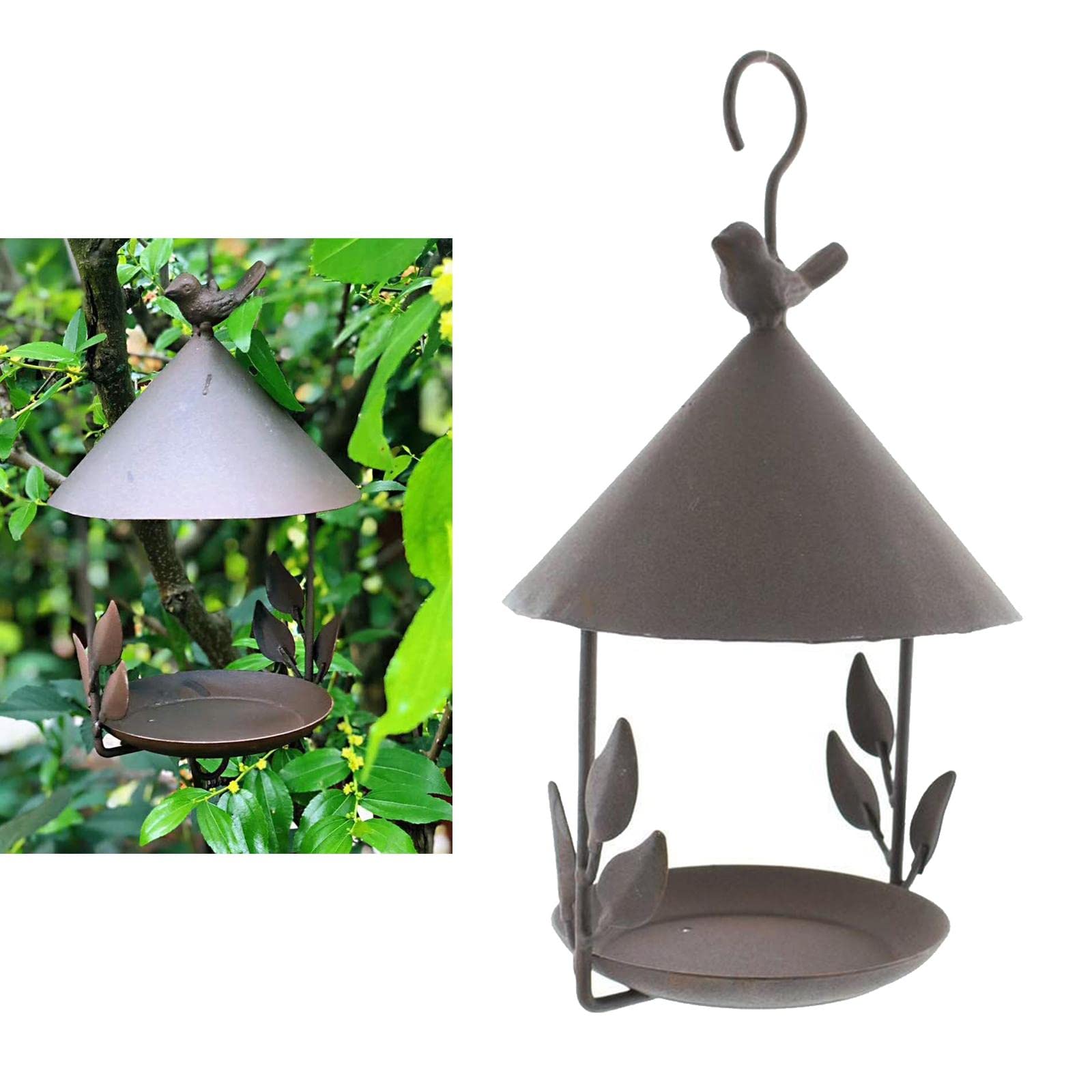 NGE バードフィーダー 鳥と心を繋ぐ 屋根付き 自動給餌 大容量1kg 吊り下げ 防滴・カラス対策 軽量 バードウォッチング 窓辺 ベランダ 庭 ガーデン 小鳥 野鳥 自然の癒し (ブラウン)