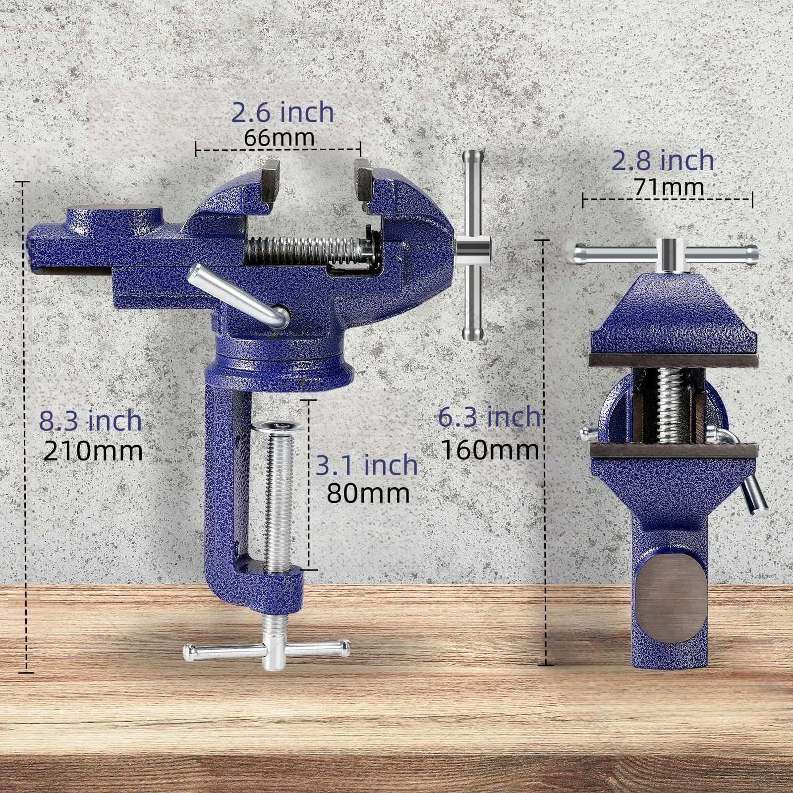 TerraShine バイス 万力 卓上 口幅約70mm 携帯用作業台 クランプ万力 回転盤360°回転 切削 研磨 切断 金工作業での固定や加工 (青色)