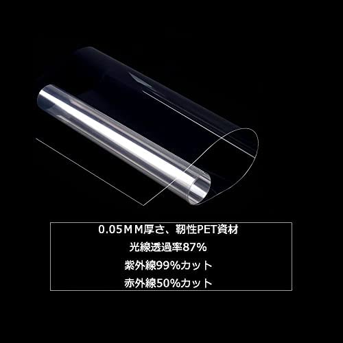 Decocar 窓用断熱透明フィルム 87%超 度 99%紫外線カット 高温をカット 60%赤外線阻隔 飛散防止防犯フィルム (90cm500cm, 87%透光、60%IR)