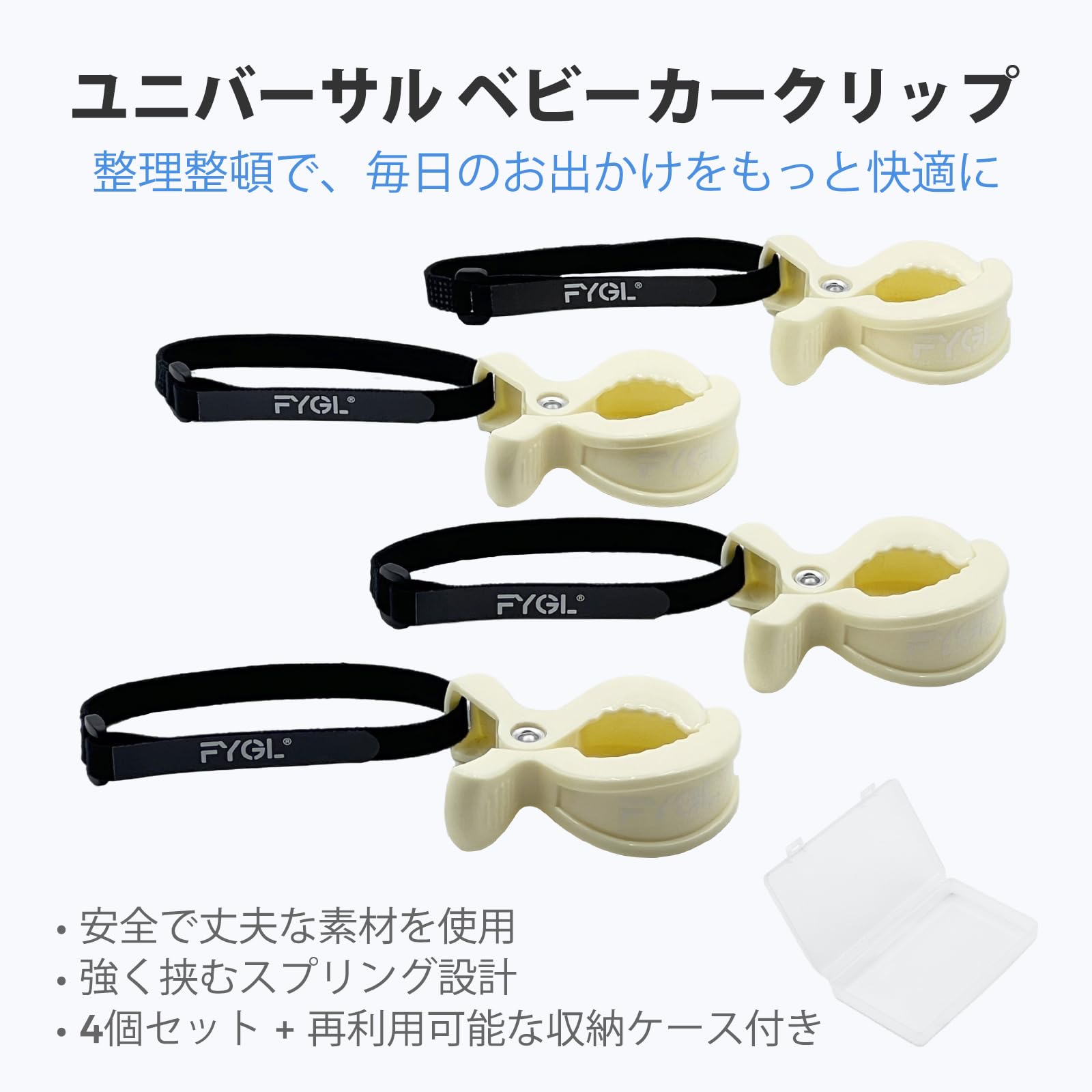 FYGL ブランケットクリップ 4個セット 伸縮ベルト付き 収納ケース入り ベビーカー ベビーベッド 毛布 タオル固定 マルチクリップ - ライトイエロー