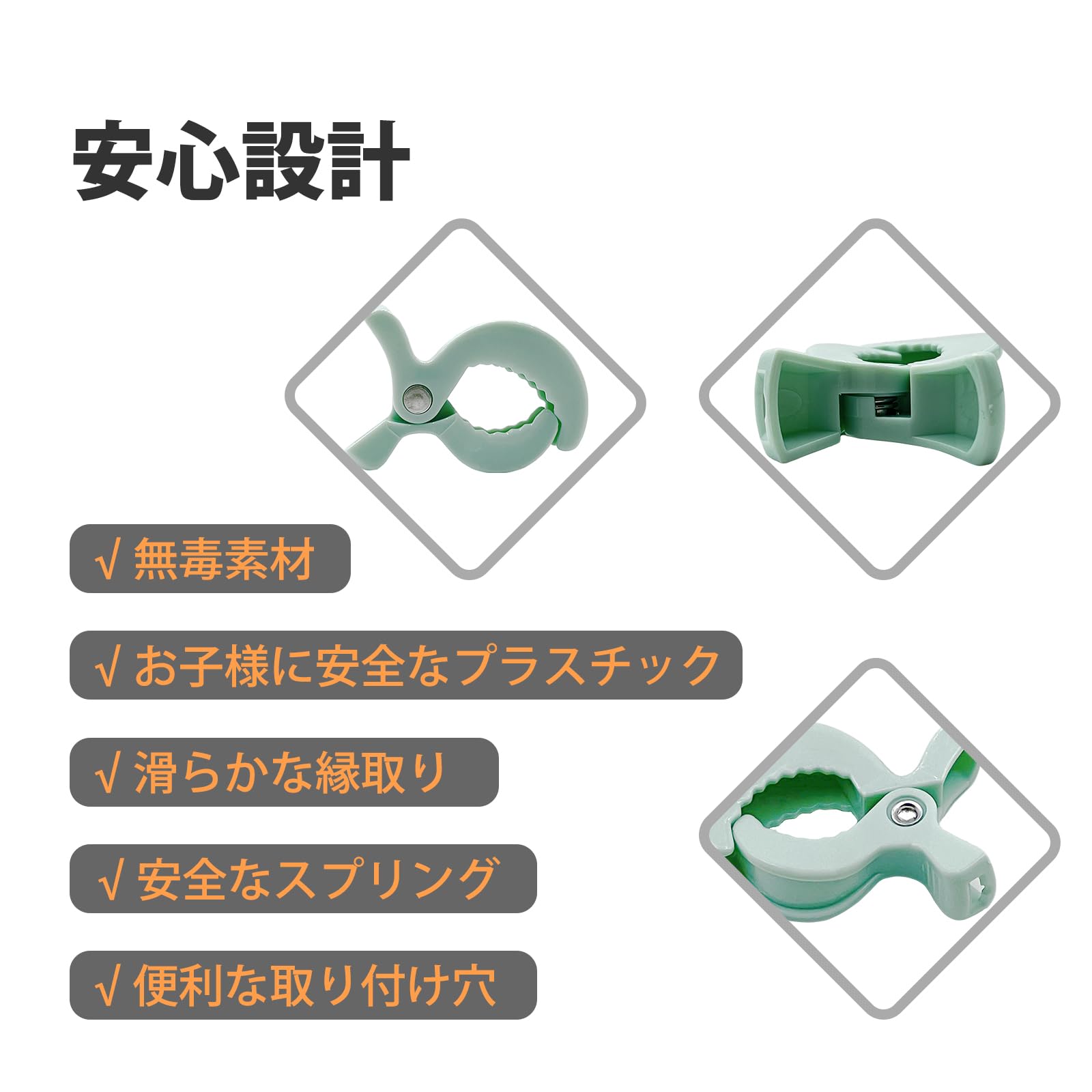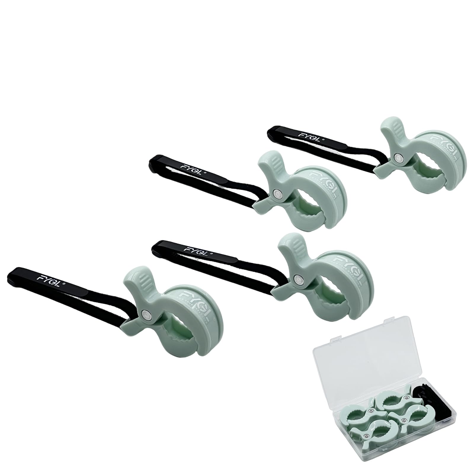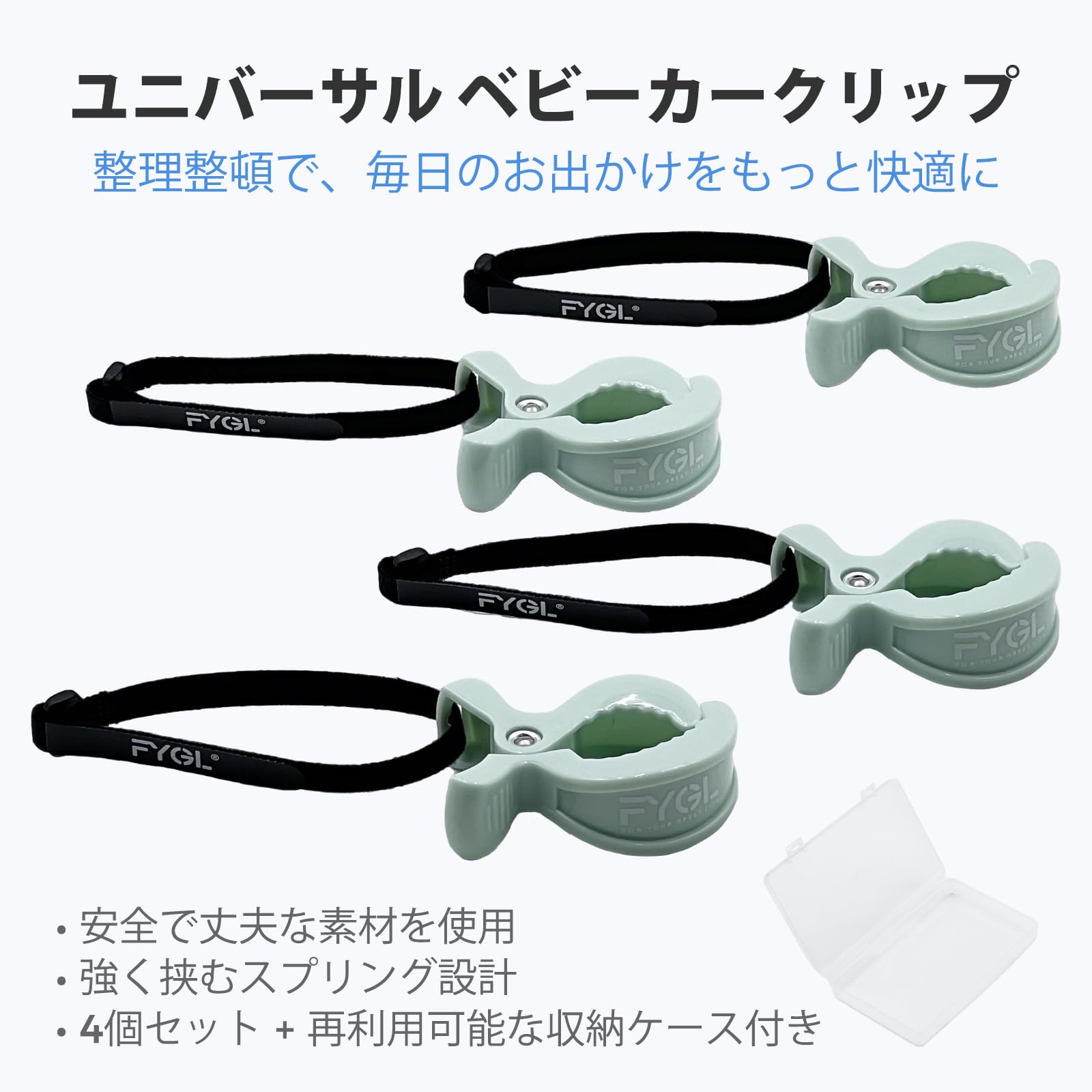 FYGL ブランケットクリップ 4個セット 伸縮ベルト付き 収納ケース入り ベビーカー ベビーベッド 毛布 タオル固定 マルチクリップ -ライトグリーン