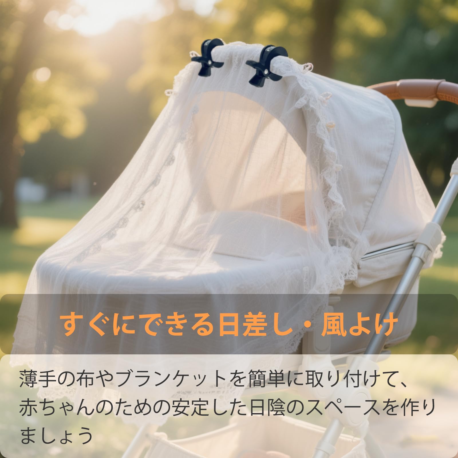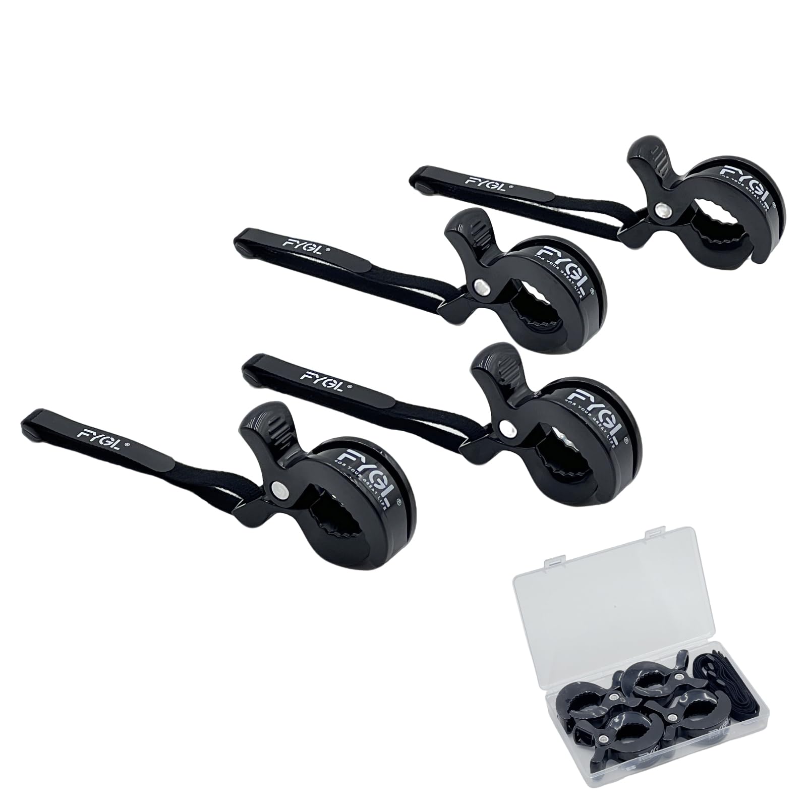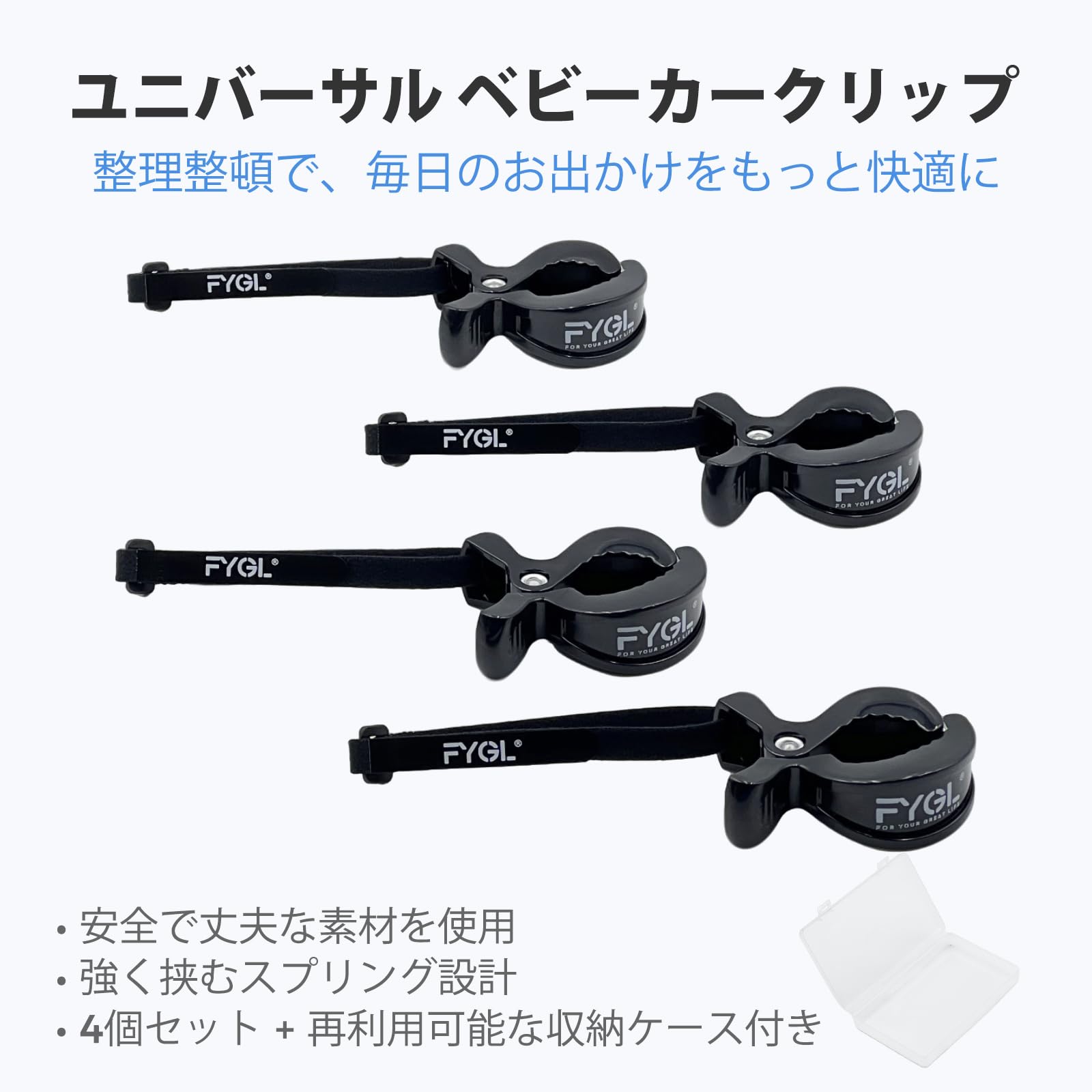FYGL ブランケットクリップ 4個セット 伸縮ベルト付き 収納ケース入り ベビーカー ベビーベッド 毛布 タオル固定 マルチクリップ - ブラック