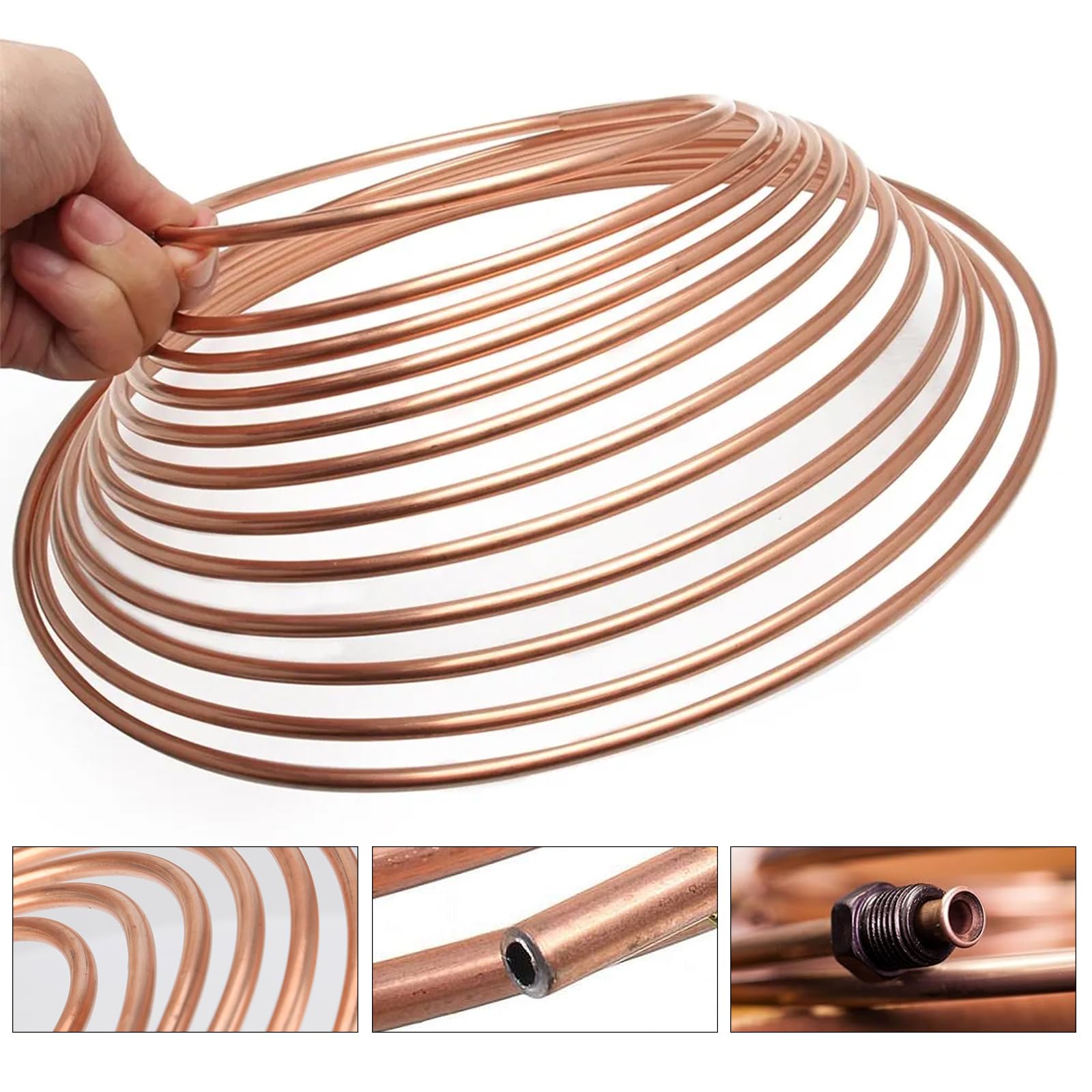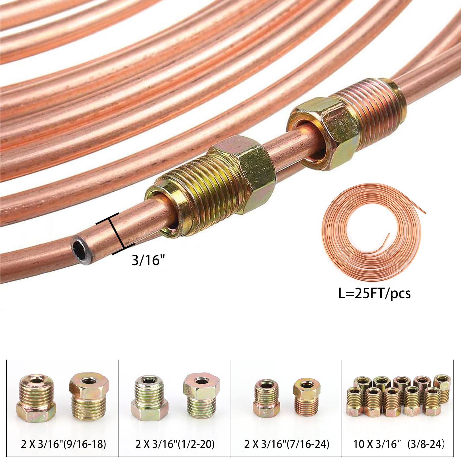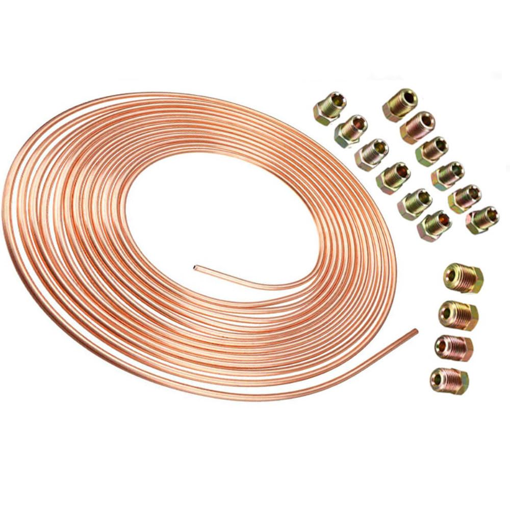 25フィート 3/16インチ ブレーキケーブルキット – フレキシブル銅コーティング合金ブレーキケーブルコイル、16ホーンコネクタ付き、互換性のあるSAE規格油圧燃料移送システム